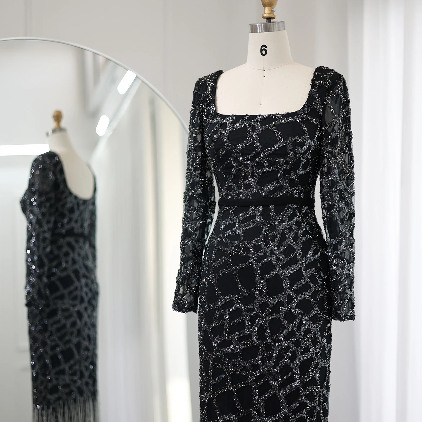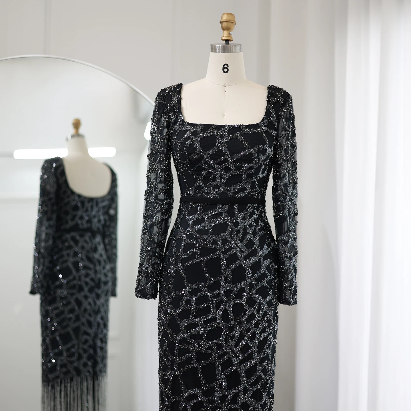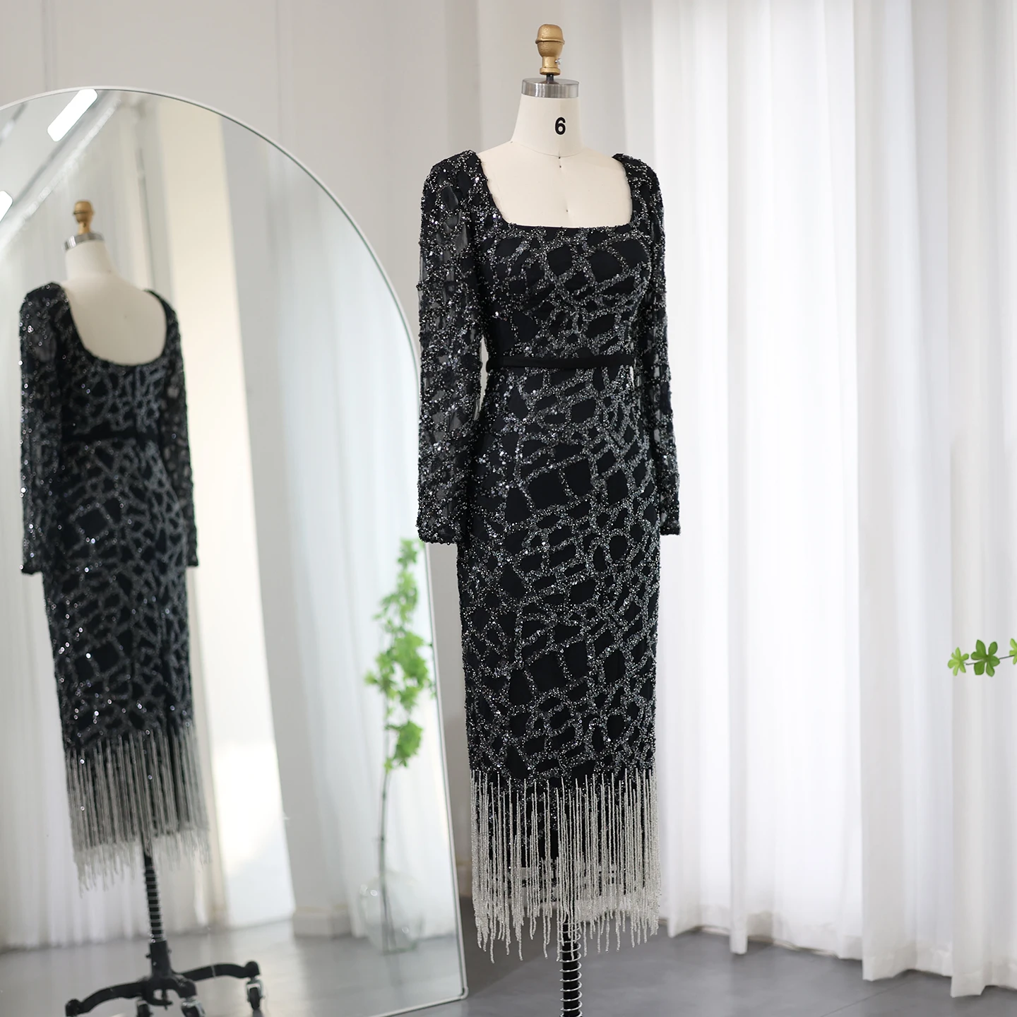 Luxury Dubai Tassel Hot Pink Evening Dresses For Women Elegant Long Sleeves Fuchsia Arabic Wedding Party Gowns Sz347