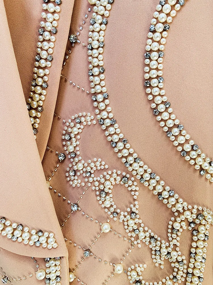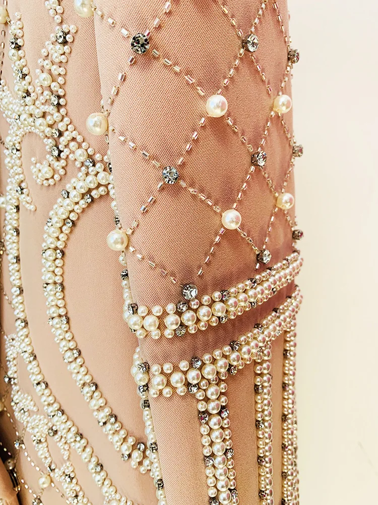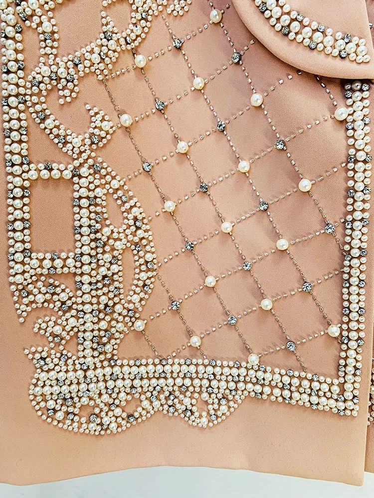 Luxury Fine Workmanship Beads Rhinestone Lady Newly Fashion Shawl Collar Long Sleeve Office Fitted Midi Length Blazer