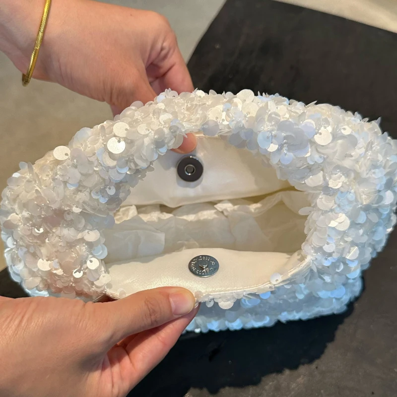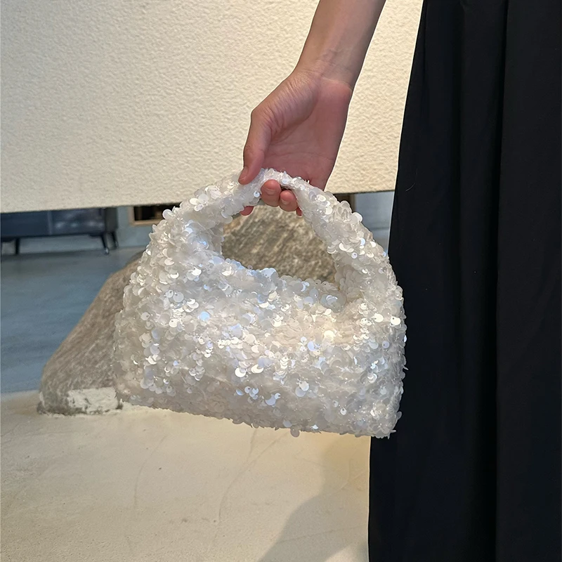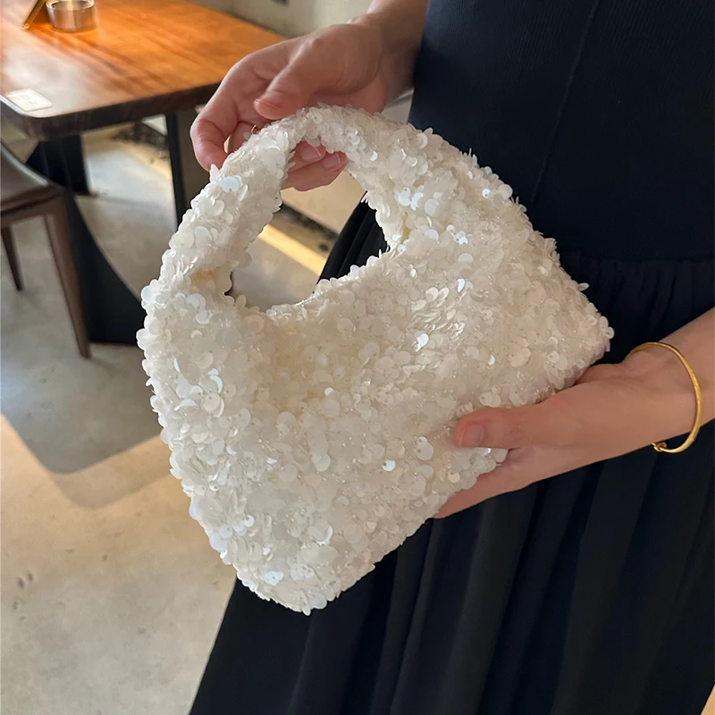 Luxury Pearlescent Sequin Party Wallet Crescent Shape Exquisite Elegant Evening Clutch Bag Summer Beach Wed Shoulder Bag Handbag