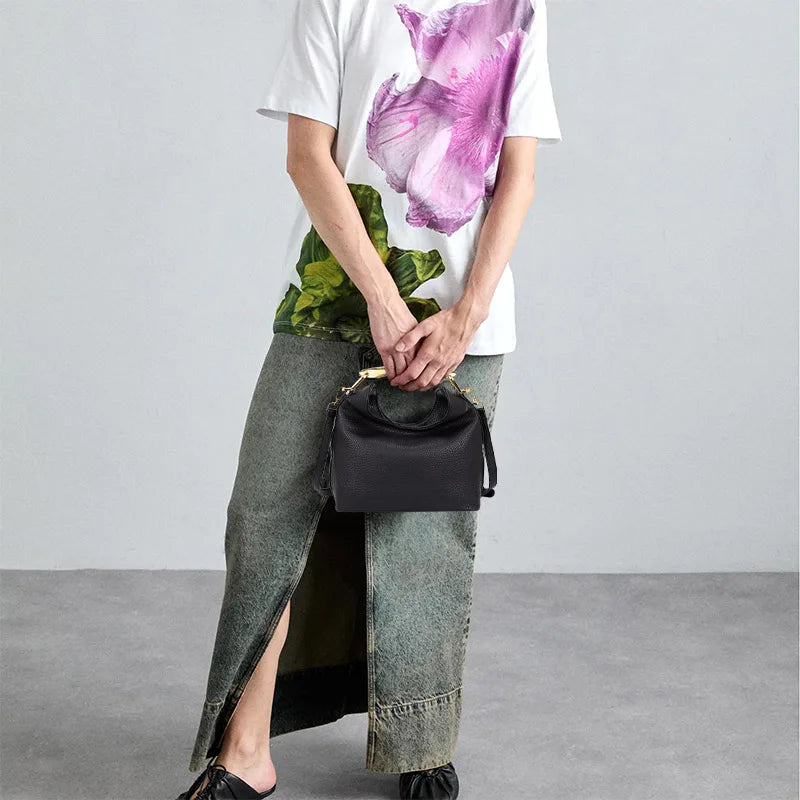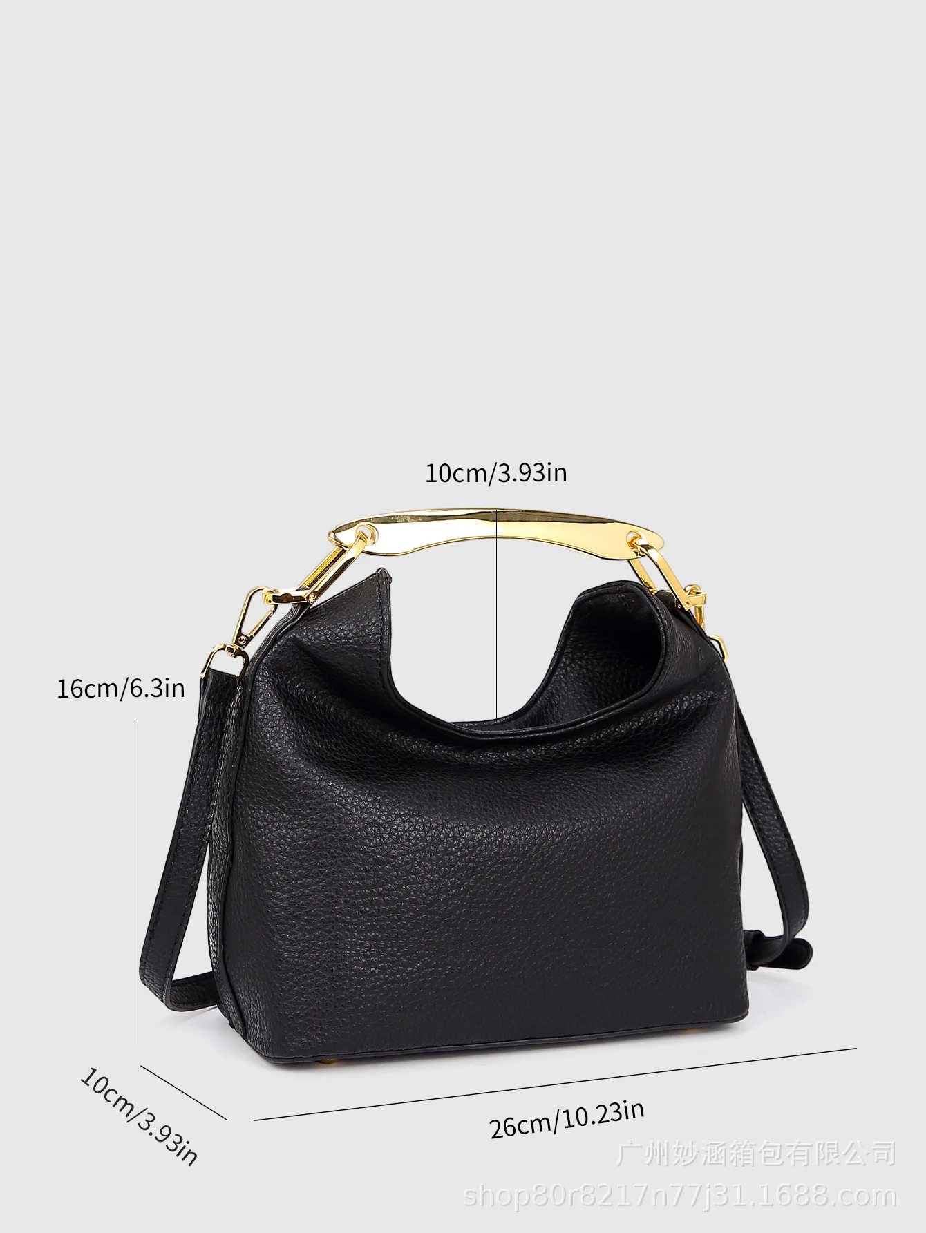 Luxury Texture Women's Bag Lychee Pattern Metal Handle Shoulder Bag Evening Clutch Bag Fashion Designer Half-moon Crossbody Bag