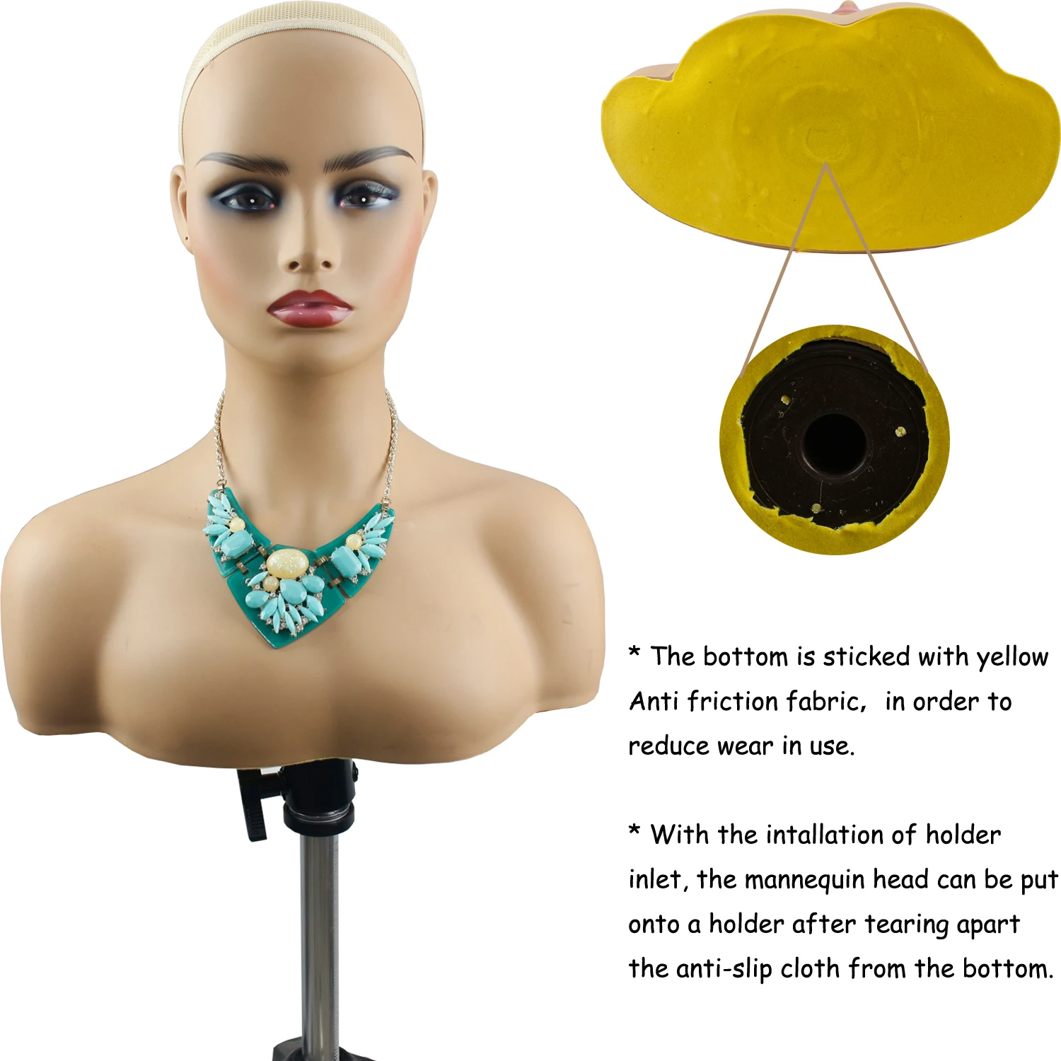 mannequin wig head training 18'' Life Size PVC Manikin Head Realistic Wig Head Stand for Wigs Display Making Styling