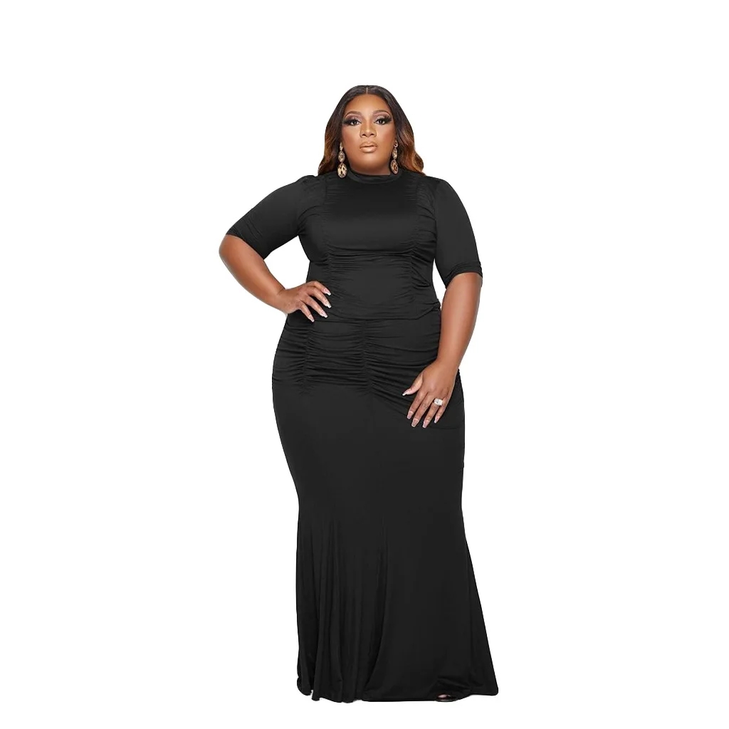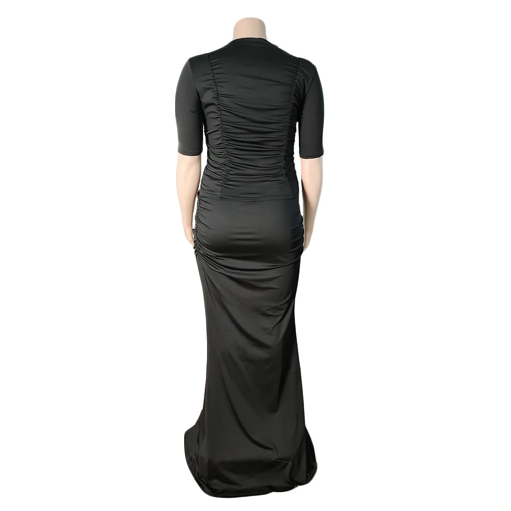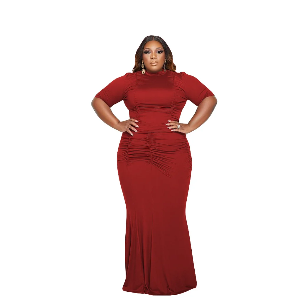 NEW 2023 European and American Hot plus-size solid color pleated fashion sexy women's two-piece set