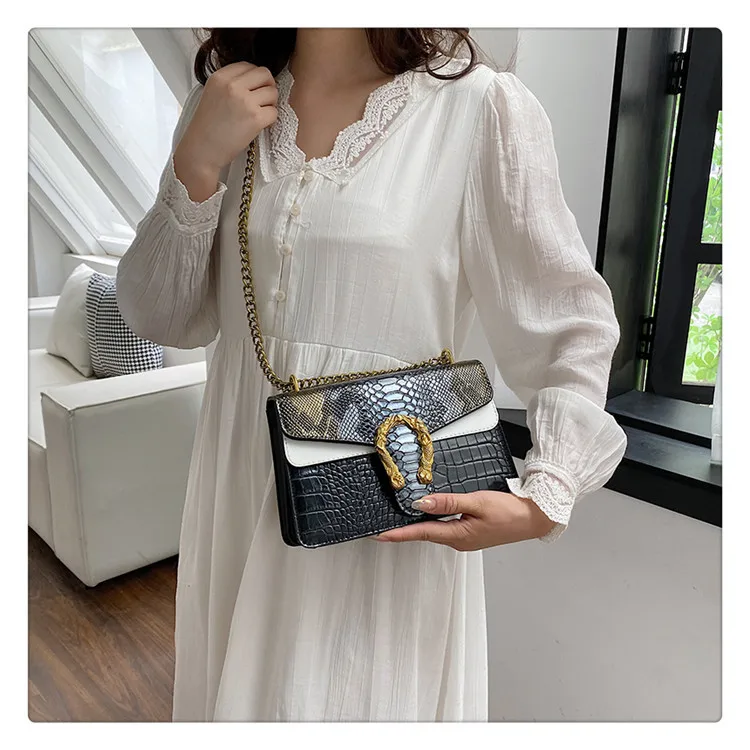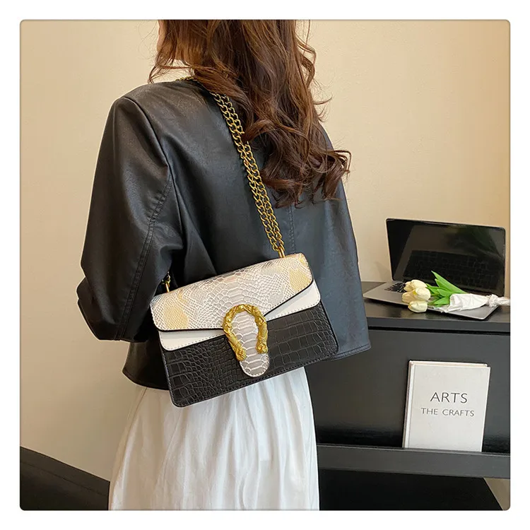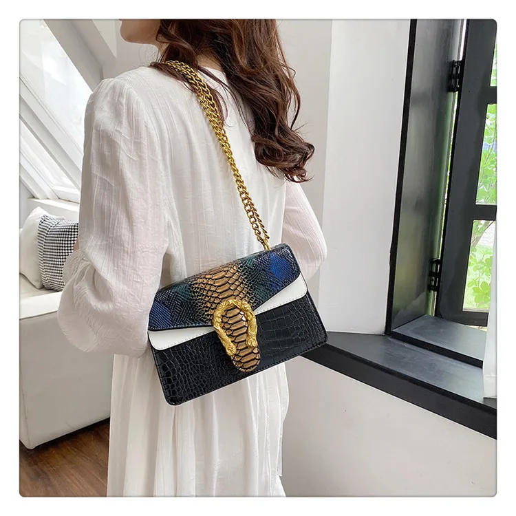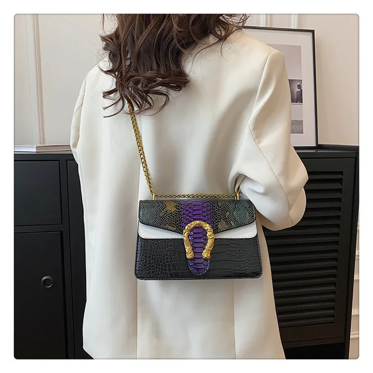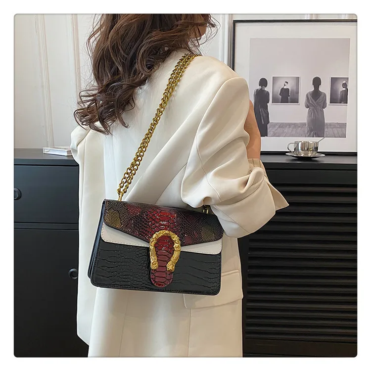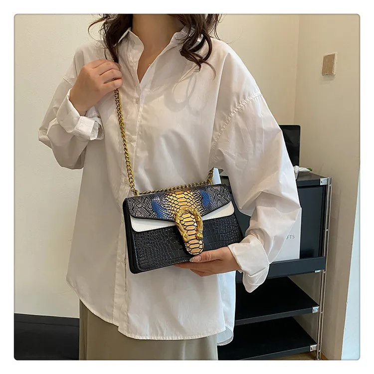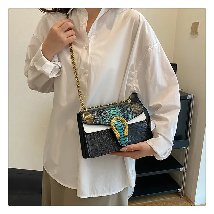 New Colored Shoulder Bag Premium small bag Fashion Versatile Trendy Women's Chain Crossbody Bag Advanced Snake Pattern Handbag