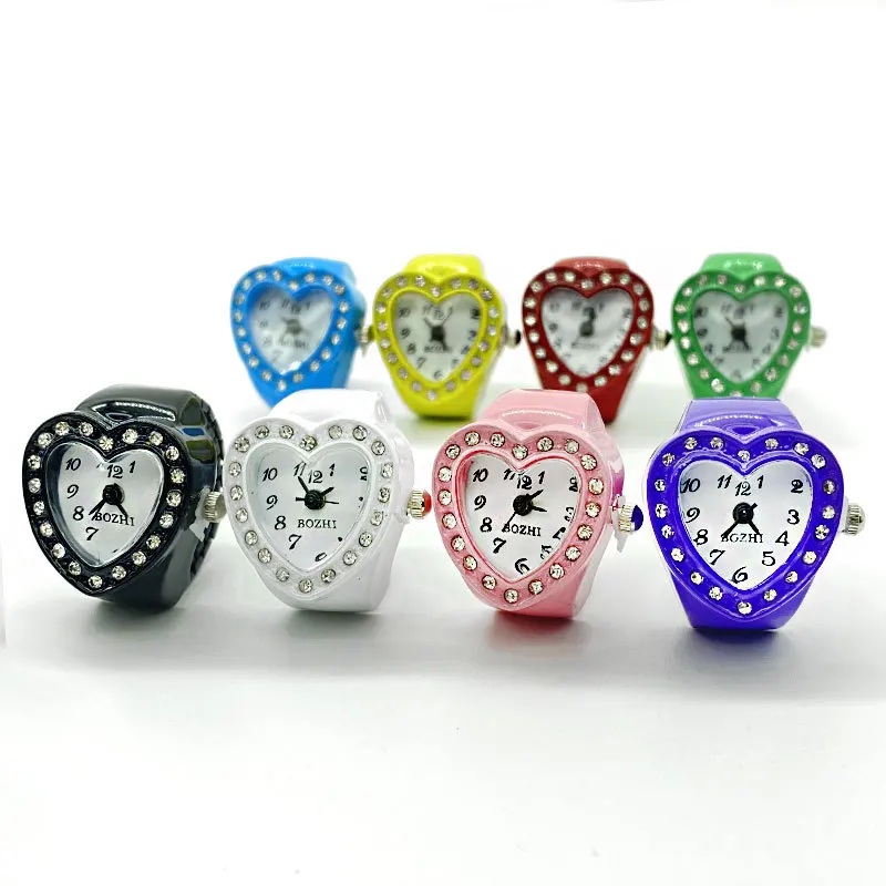 New Heart Crystal Elastic Stretchy Mini Watch Ring For Women Fun Cute Sweet Trend Girly Finger Watch Aesthetics Jewelry Gift