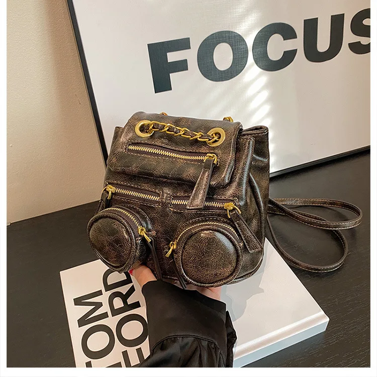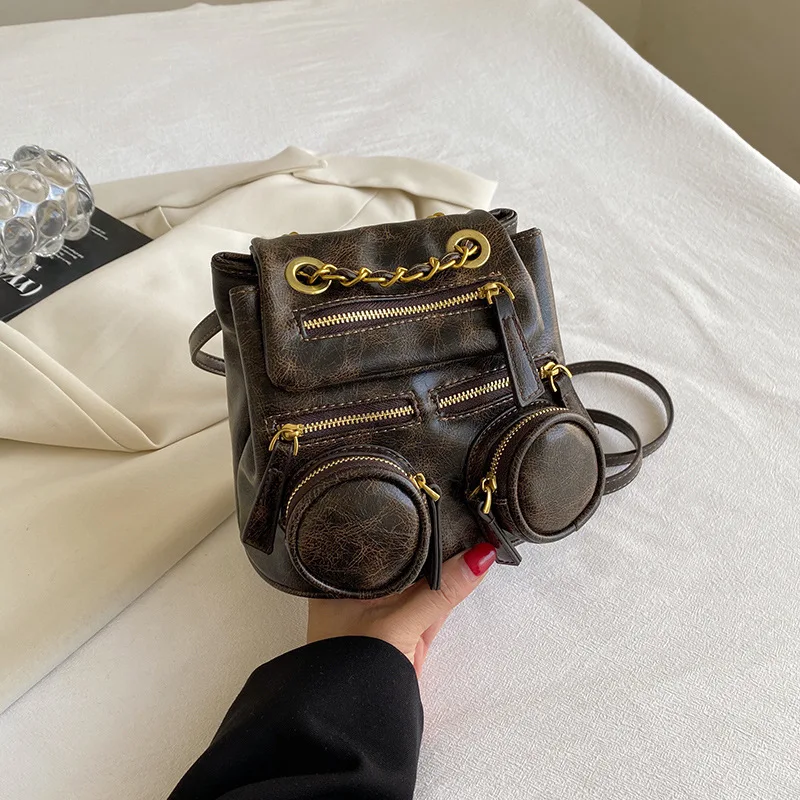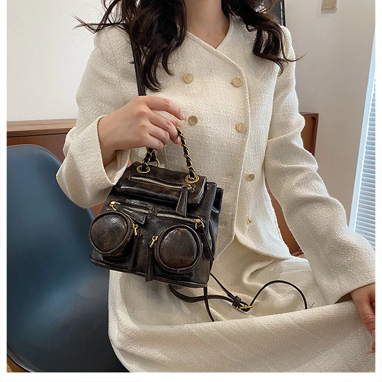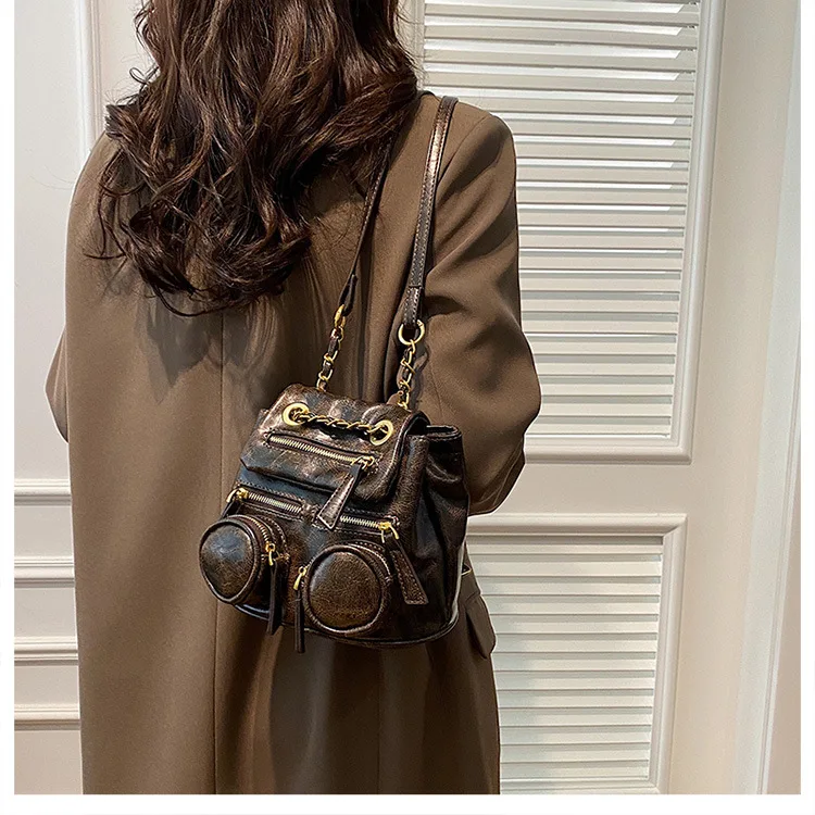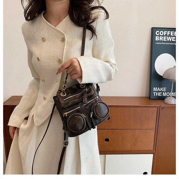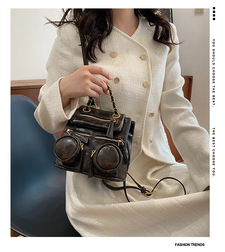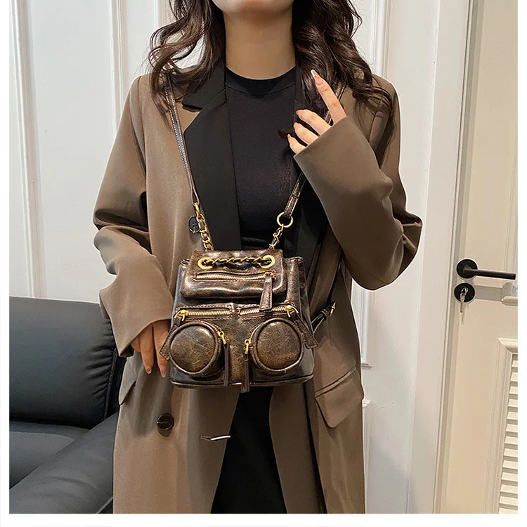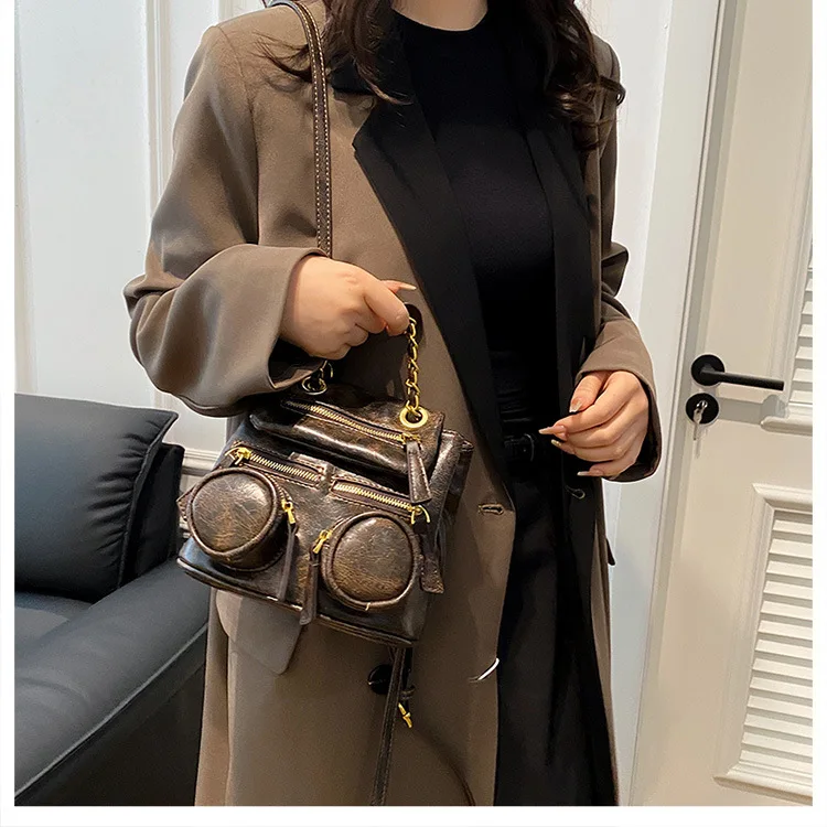 NEW Leather One Shoulder Bag For Women Fashion 2024 New Trendy Double Pockets Zipper Chain Crossbody Bags Female