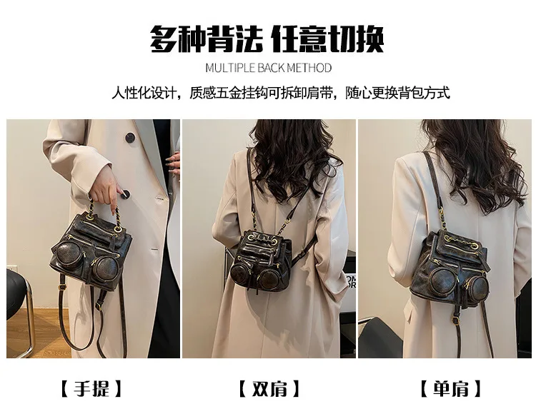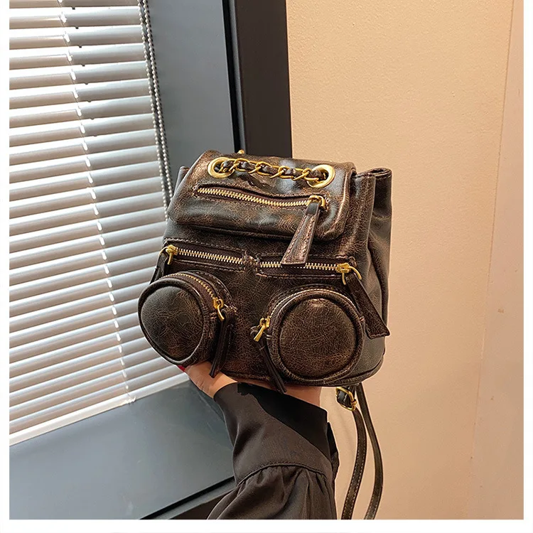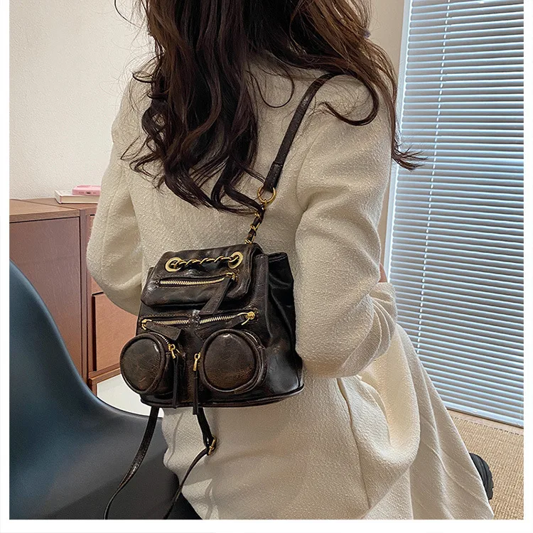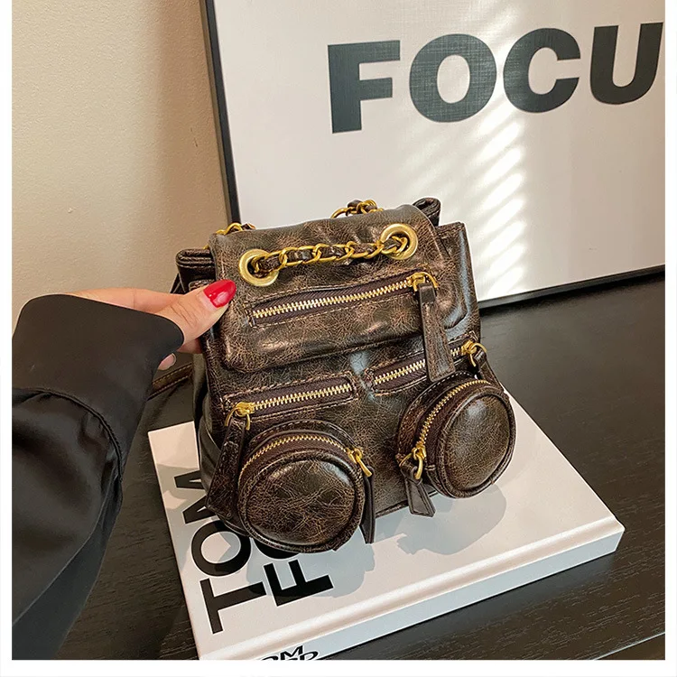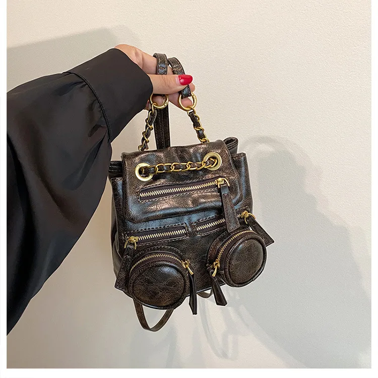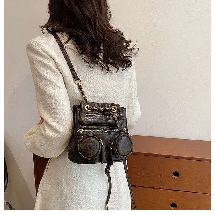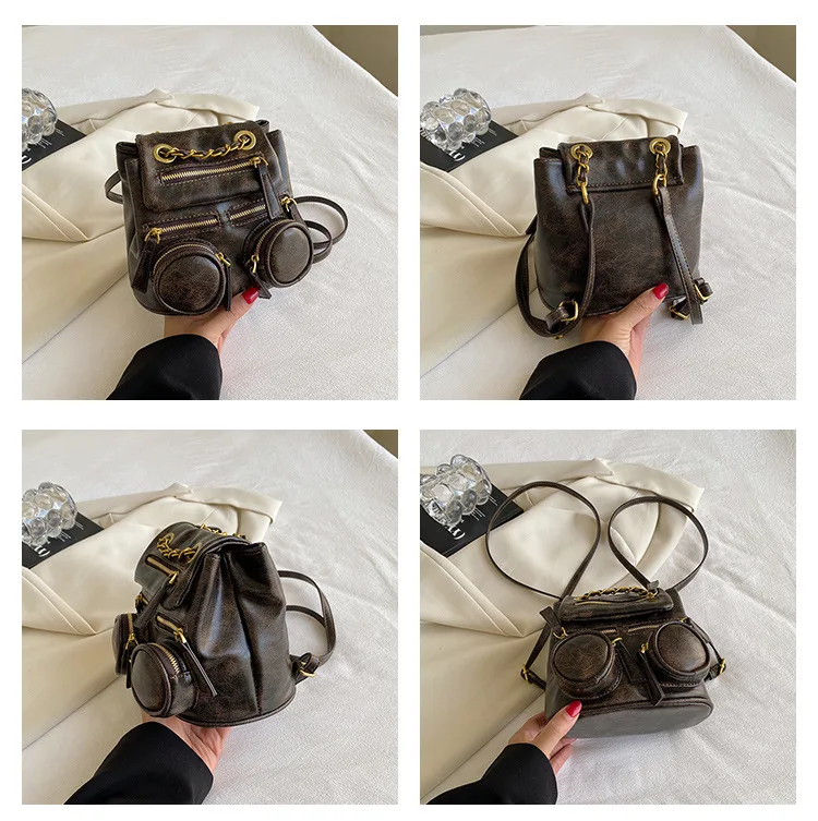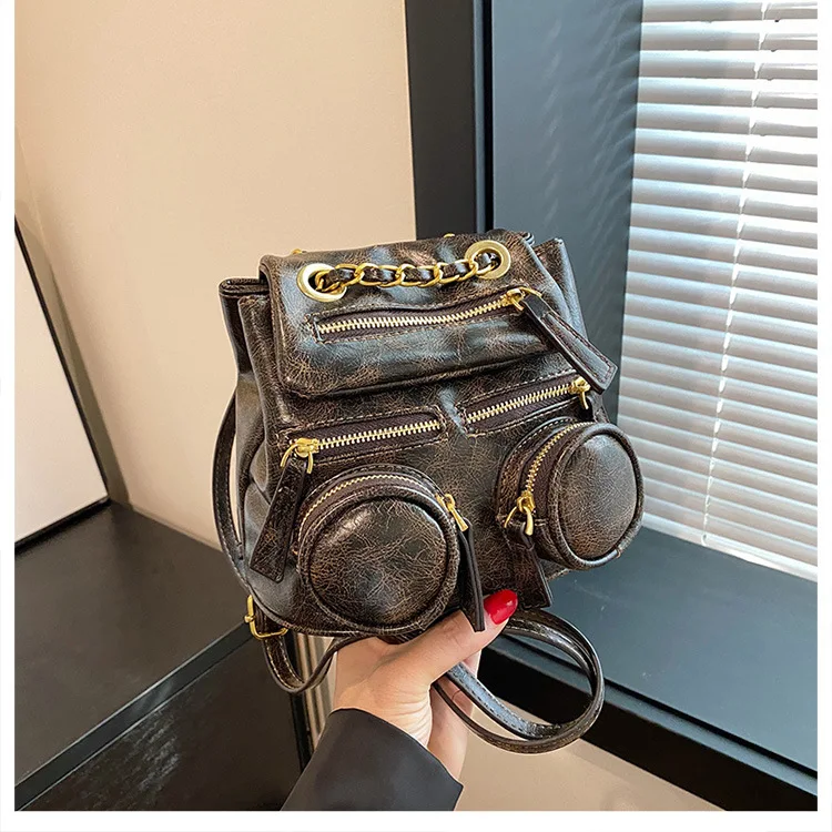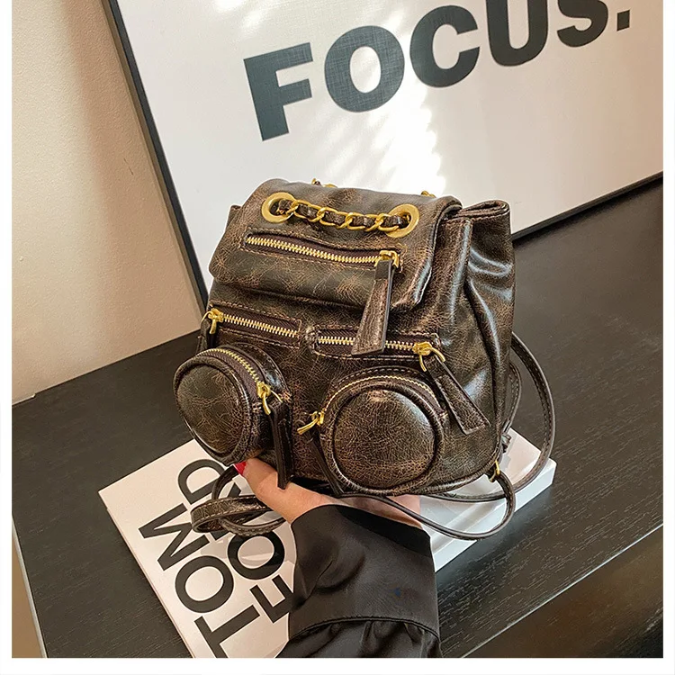 NEW Leather One Shoulder Bag For Women Fashion 2024 New Trendy Double Pockets Zipper Chain Crossbody Bags Female