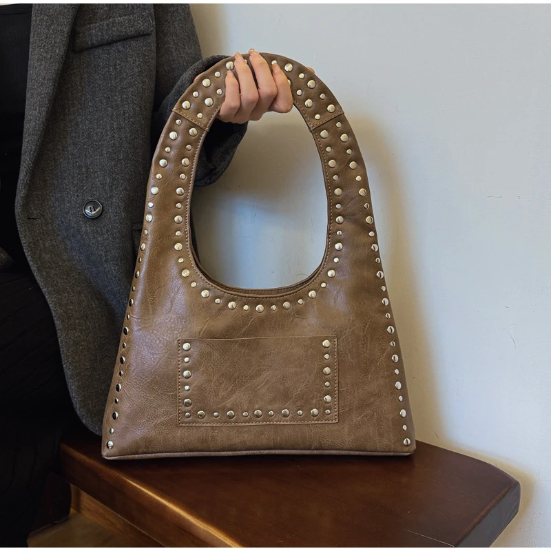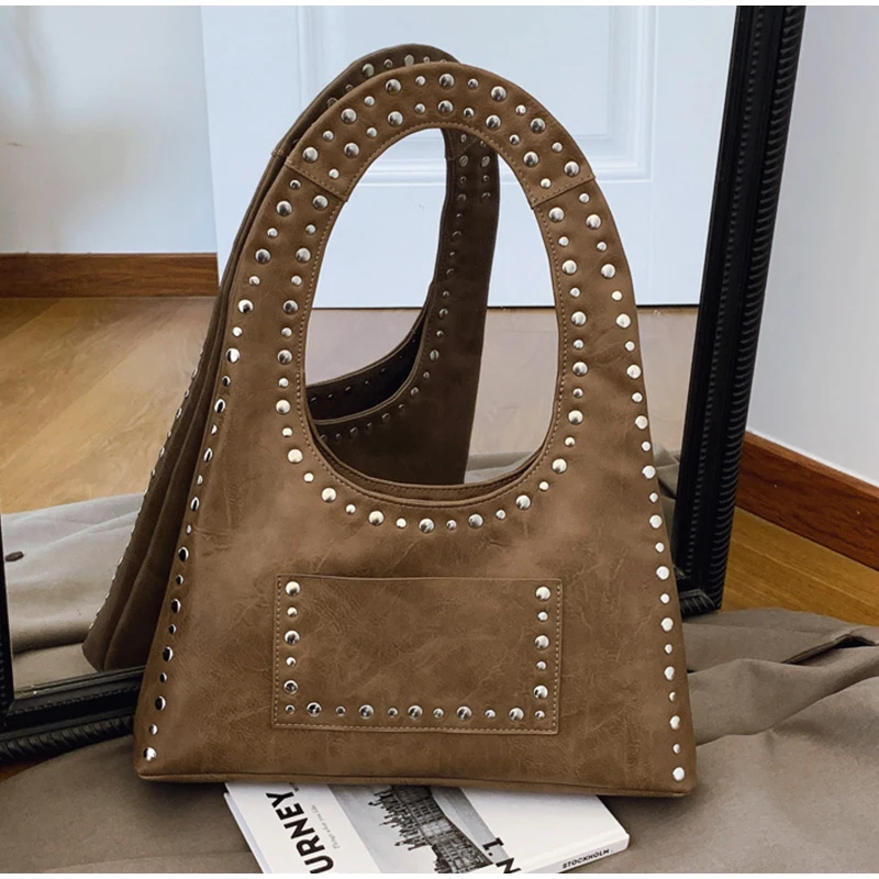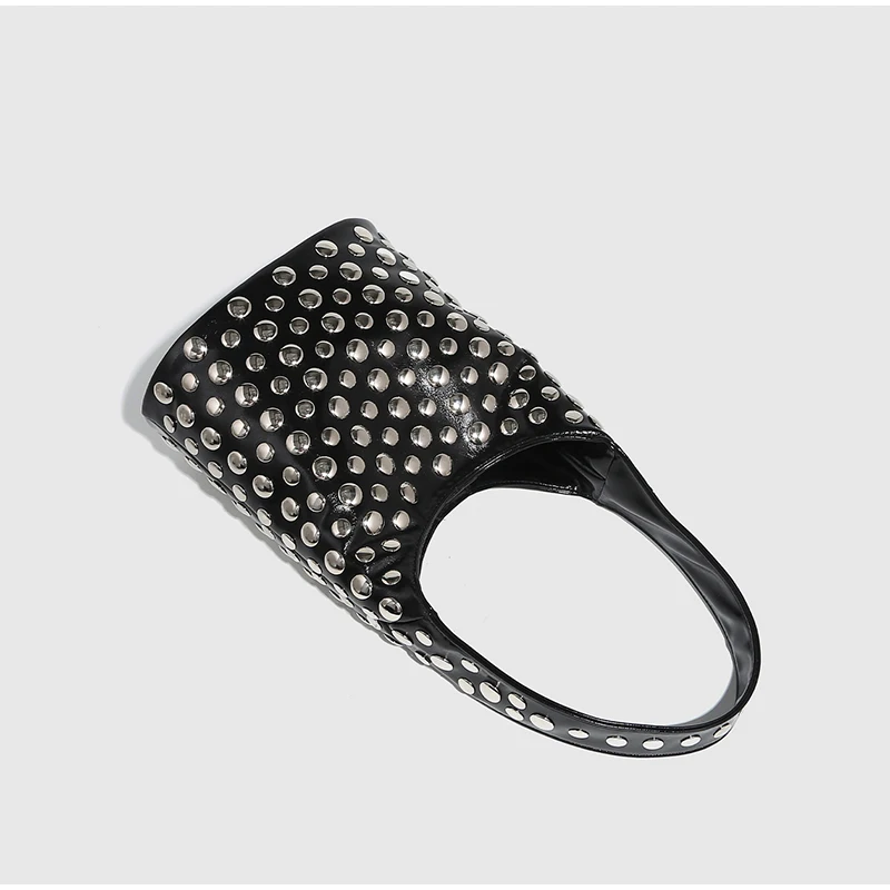 New Rivet Series Bucket Bag Motorcycle Texture Trendy Handbag Tortoise Shell Sequins Versatile Simple Fashion Soft Bag Lady Bag