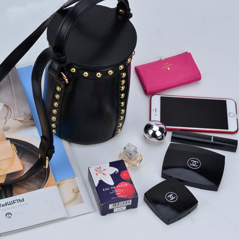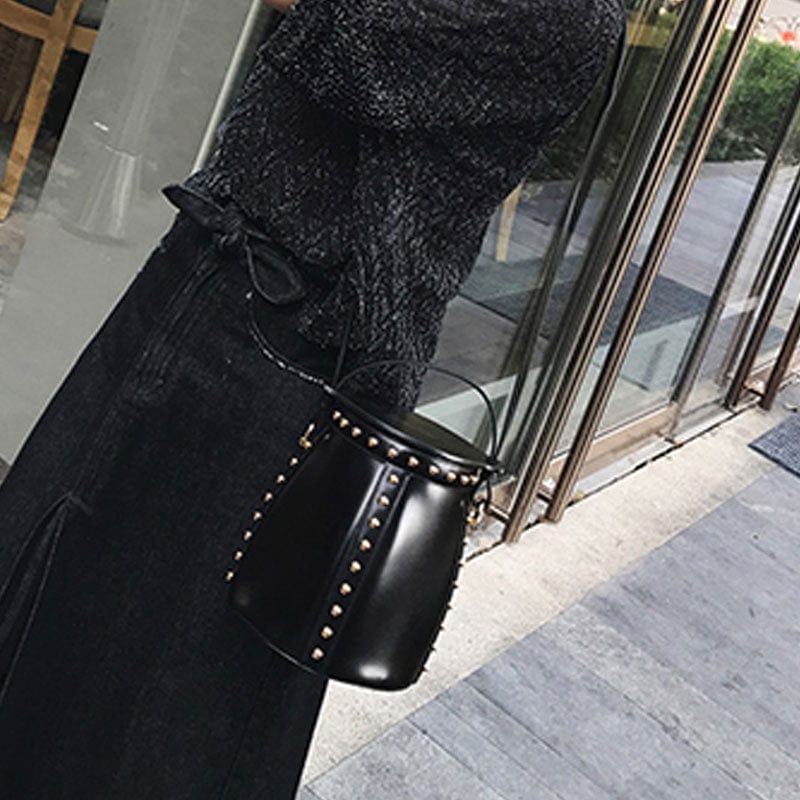 New style Handbags with Rivets Shoulder Bag Black Women Bucket Bag