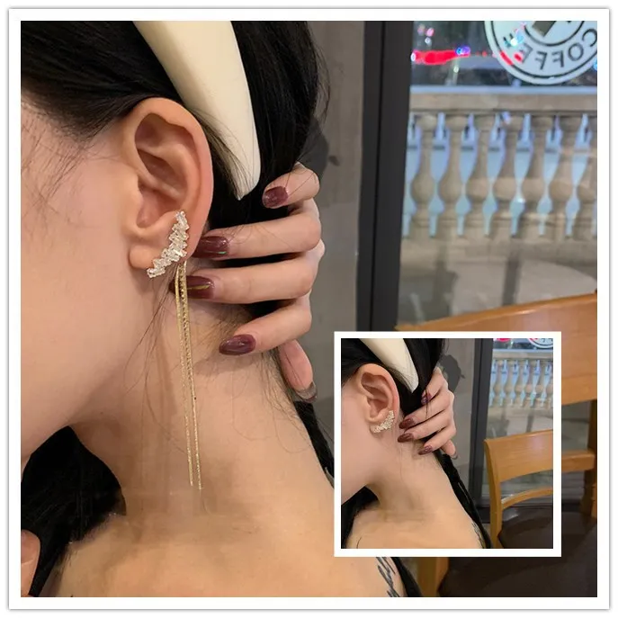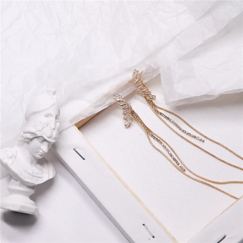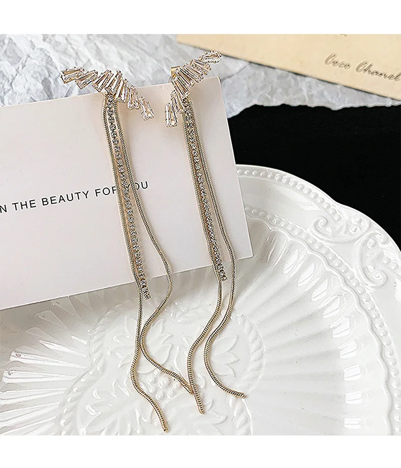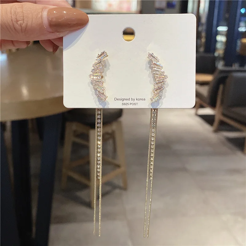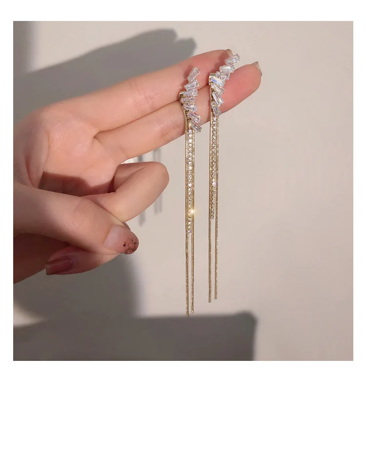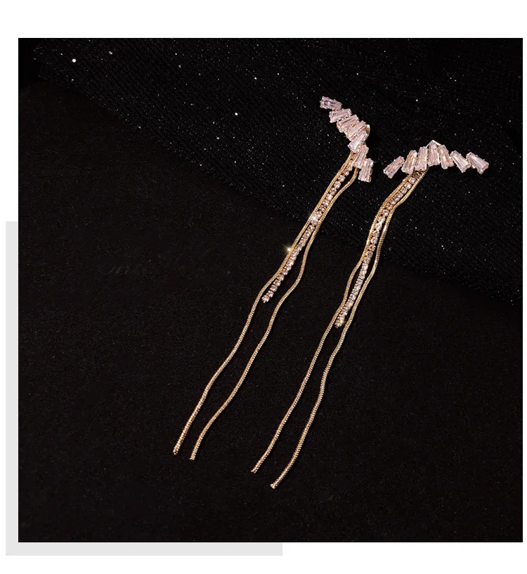 New temperament long crystal zircon tassel earrings female super fairy net celebrity earrings