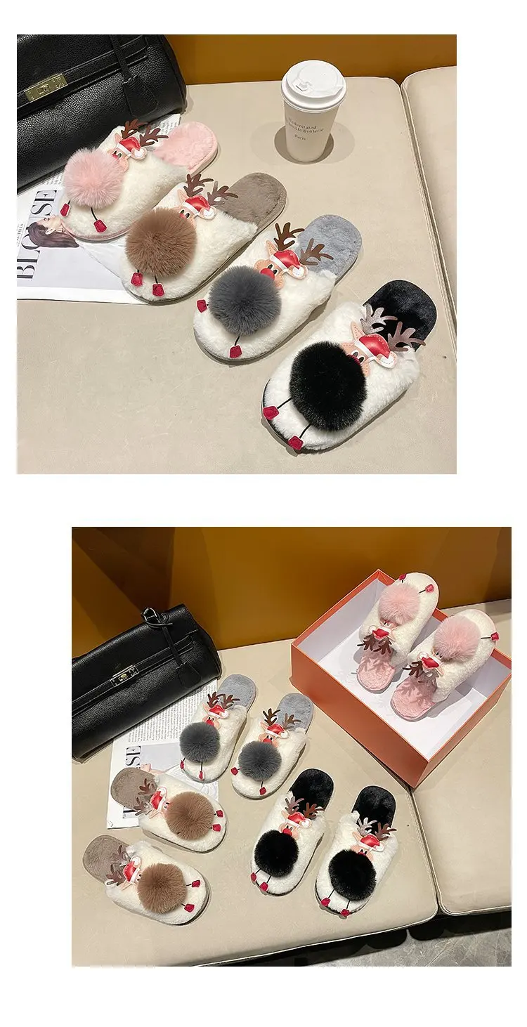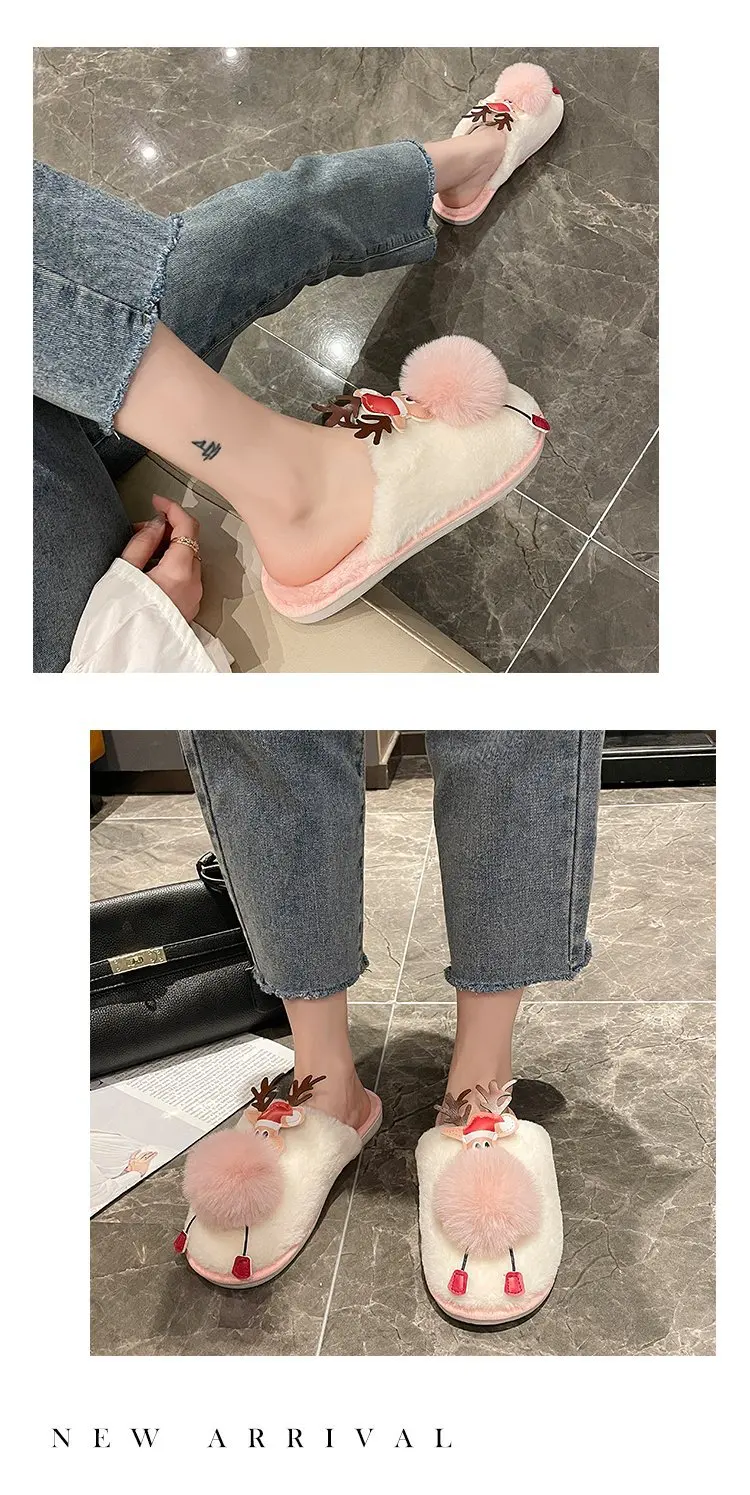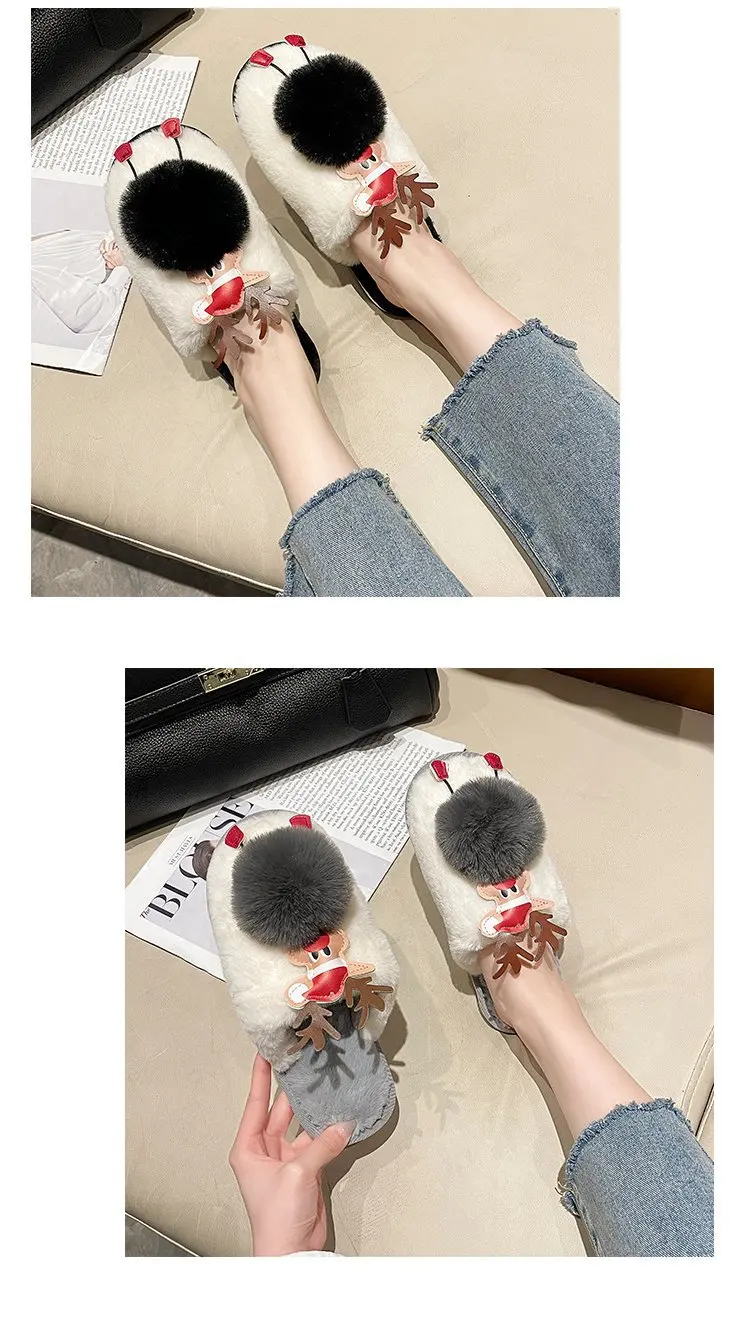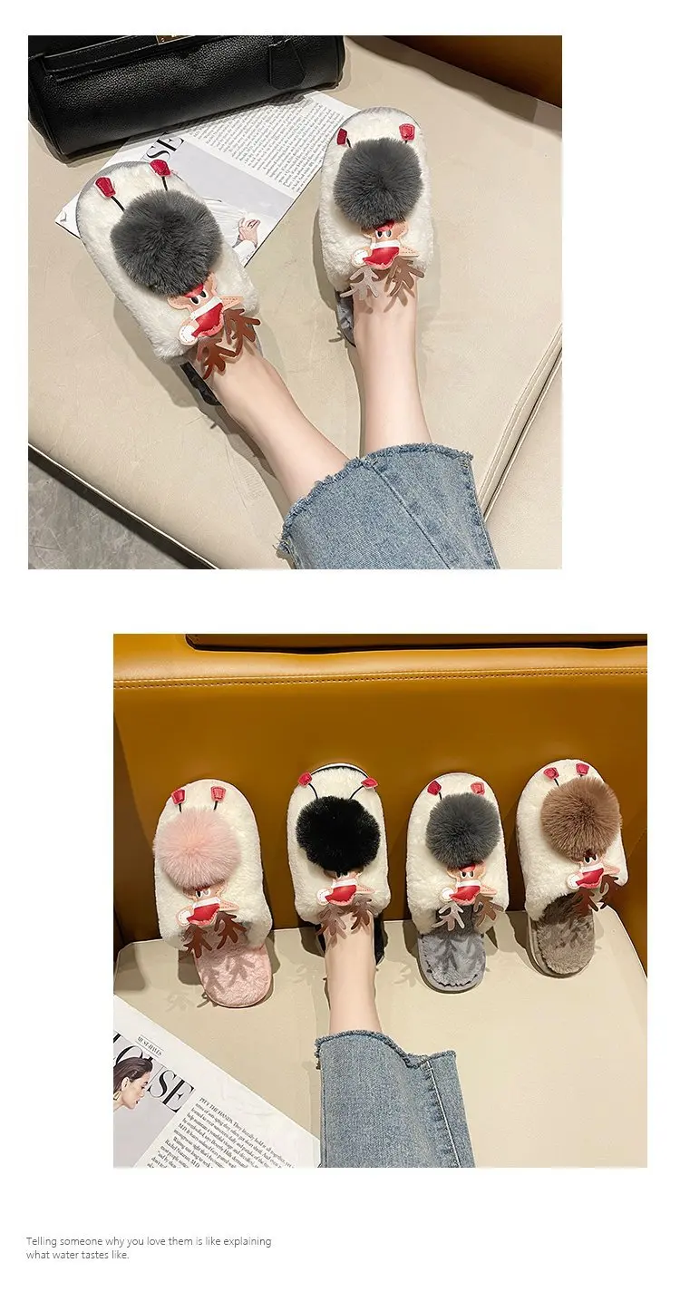 New Winter Korean Fashion lovely cartoon fluffy slippers Fur Warm adult Home Slippers Female Non-slip indoor Slippers