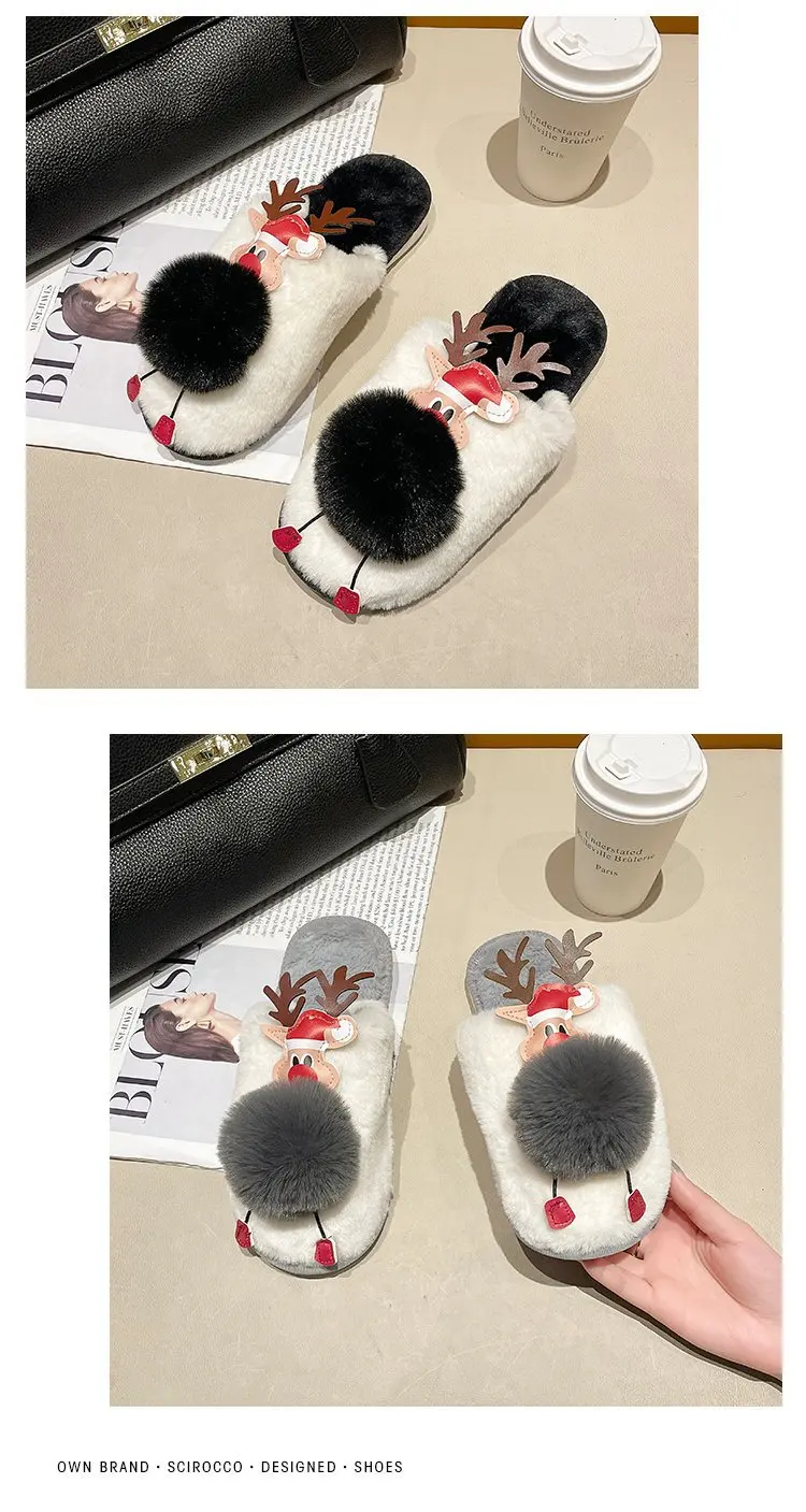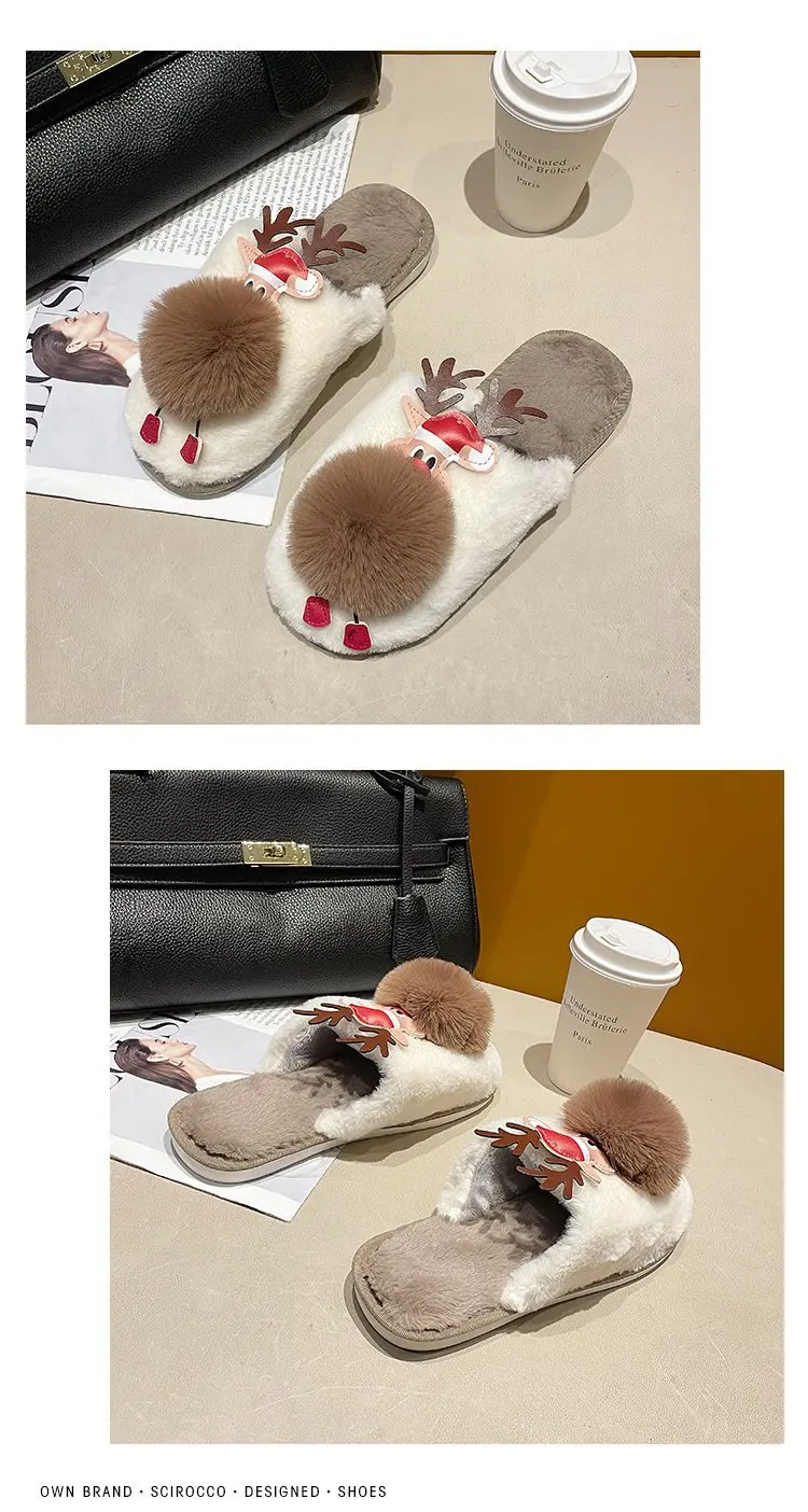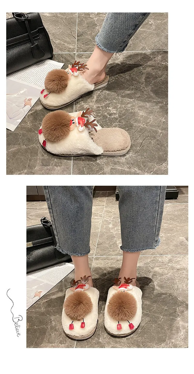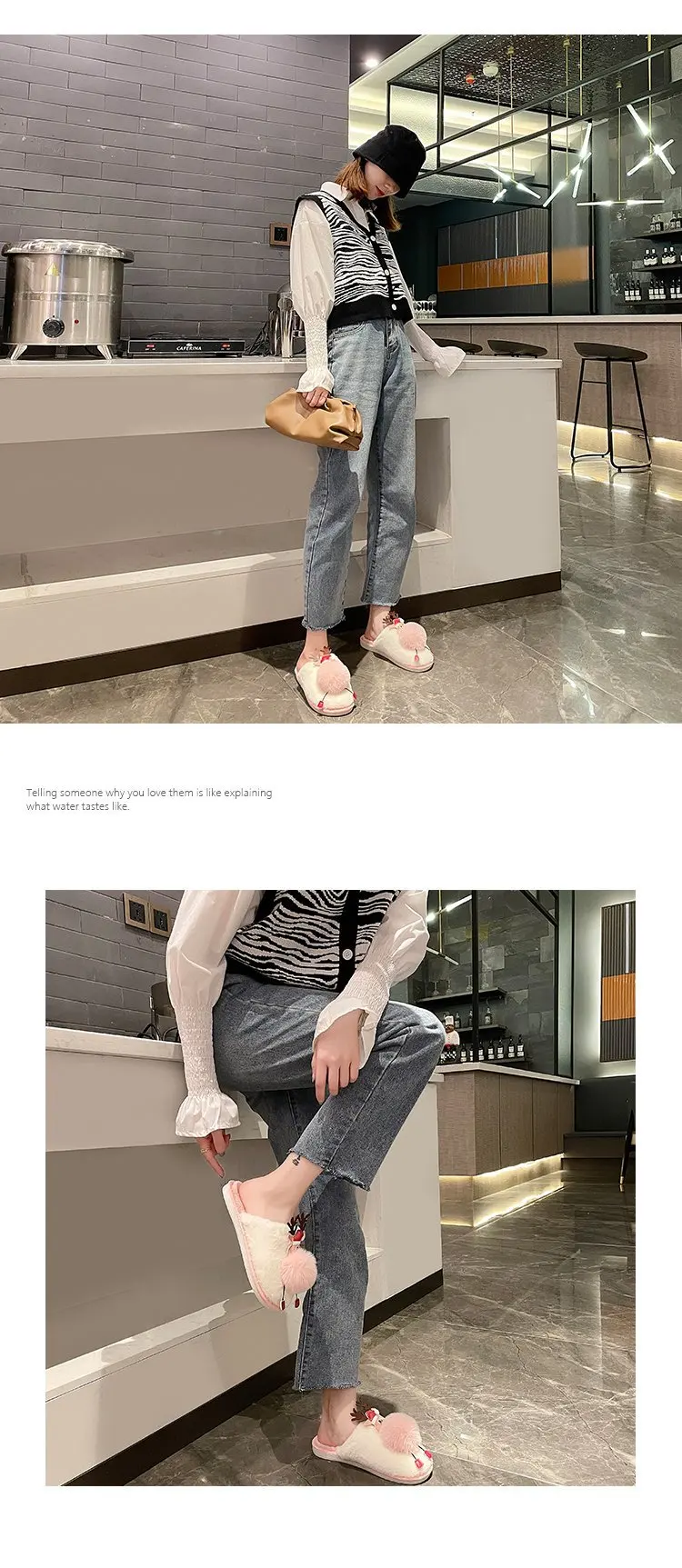 New Winter Korean Fashion lovely cartoon fluffy slippers Fur Warm adult Home Slippers Female Non-slip indoor Slippers