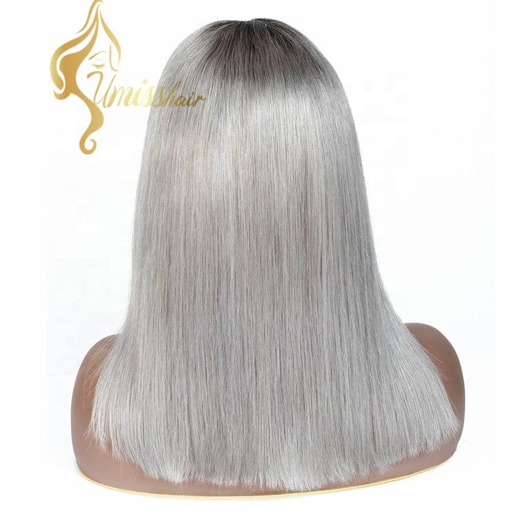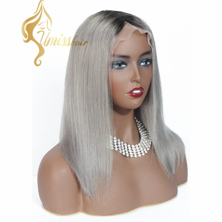 | Ombre Straight Human Wig Short Lace Frontal Grey Bob Human Hair Wigs Natural Wig Grey Hair For Lady |