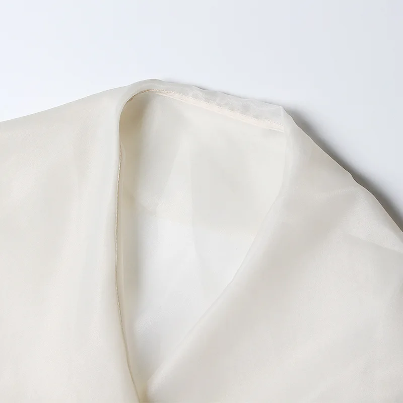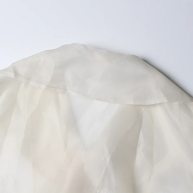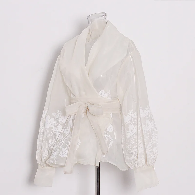 OUDINA 2024 New Chiffon Retro Style Suit Collar Puff Sleeves Shirt Lace-up Waist Blouses And Shirts For Women