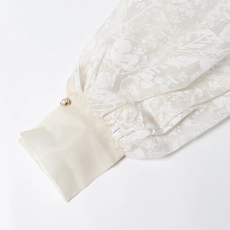 OUDINA 2024 New Chiffon Retro Palace Style Suit Collar Puff Sleeves Shirt Lace-up Waist Blouses And Shirts For Women