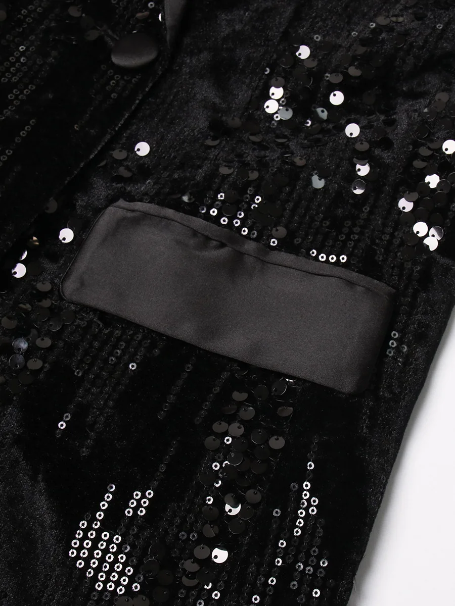 OUDINA 2024 New Fashion Light Luxury Sequin Blazer Women Style Slim Cuffs Fur Splicing Women's Suits Blazers