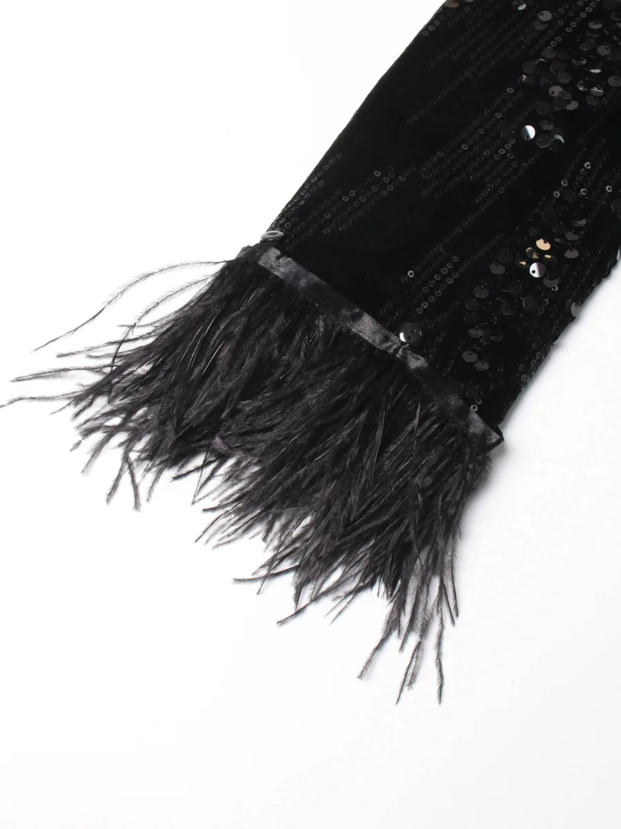 OUDINA 2024 New Fashion Light Luxury Sequin Blazer Women Style Slim Cuffs Fur Splicing Women's Suits Blazers