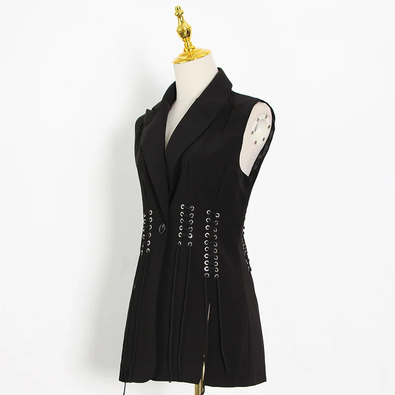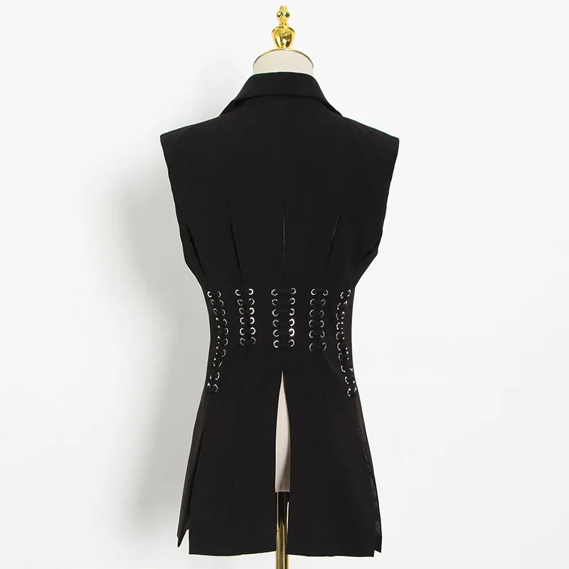 OUDINA 2024 New Fashion Temperament Heavy Industry Strap Design Suit Women's Niche Style Vest Jacket