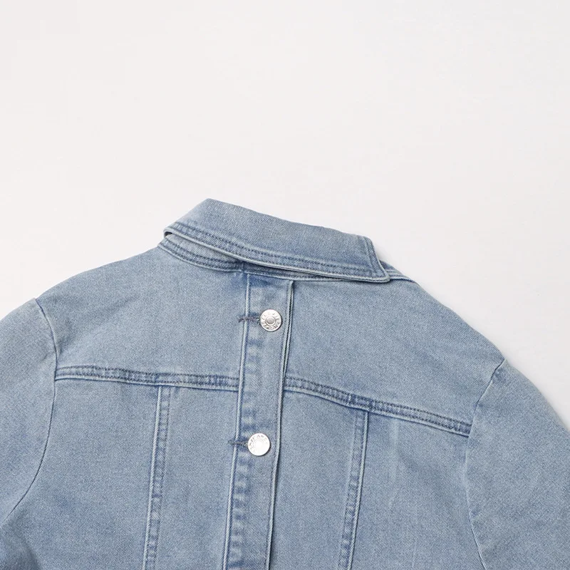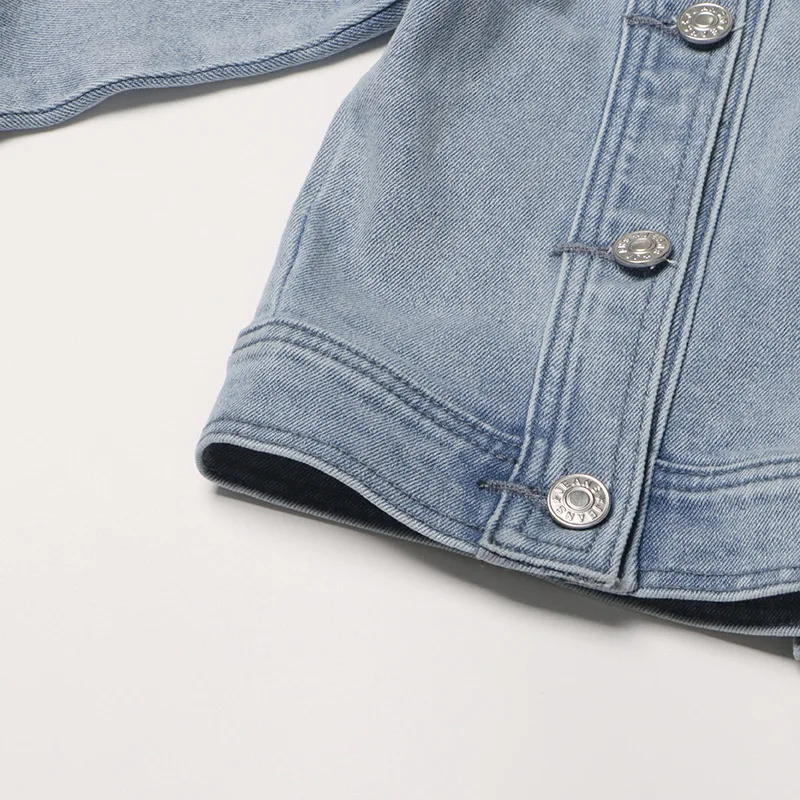 OUDINA 2024 Spring New Woman Vintage Denim Jacket Washed Distressed Off-Shoulder Design Women's Jackets