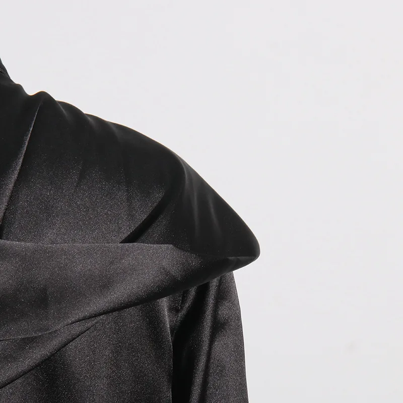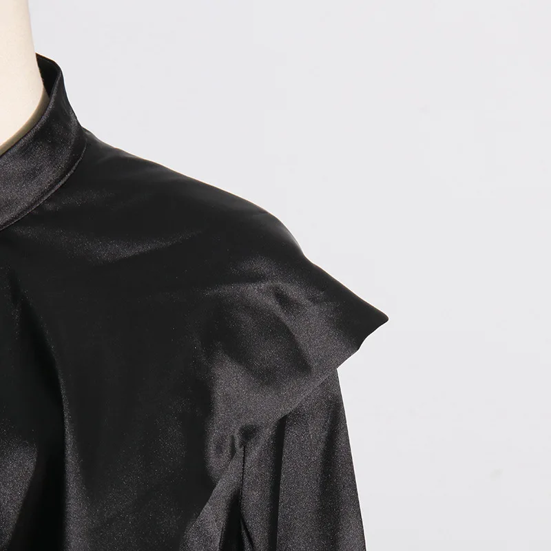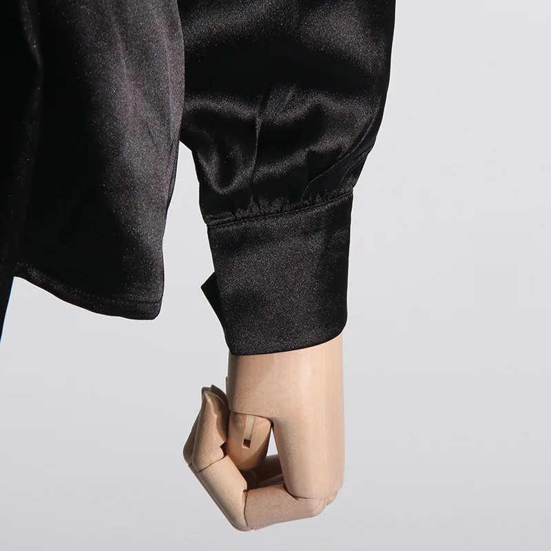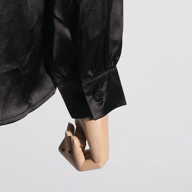 OUDINA Fashionable Satin Shirt Woman Silhouette Long-sleeved 2024 Spring New Ribbon Design Black Ladies Shirts