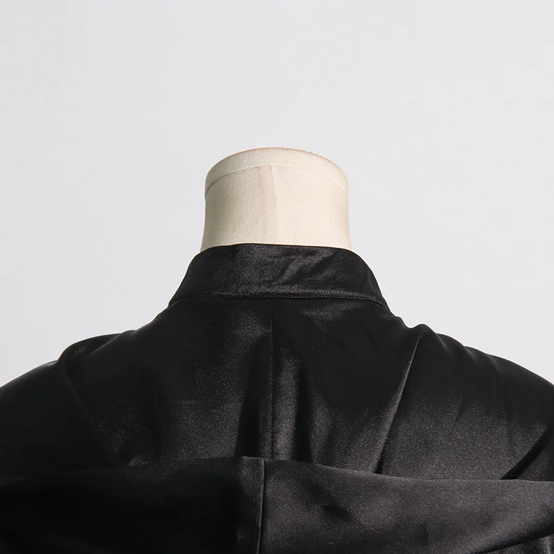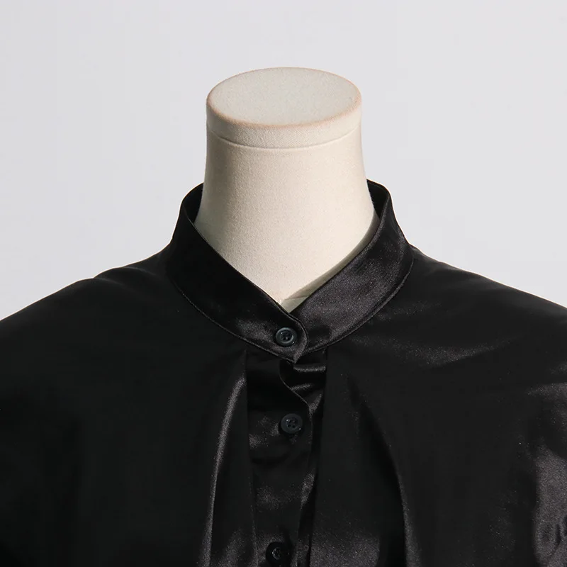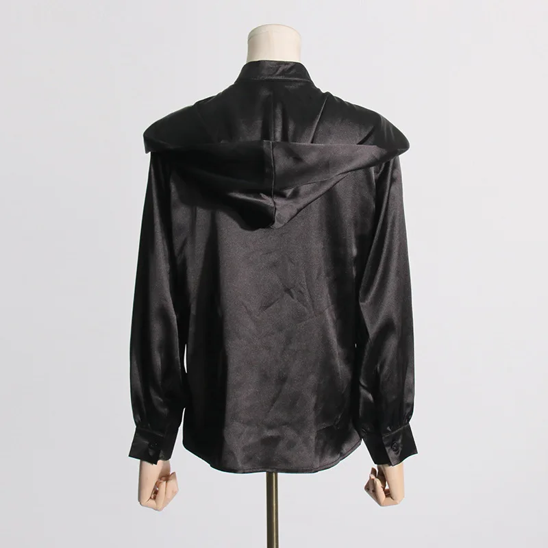 OUDINA Fashionable Satin Shirt Woman Silhouette Long-sleeved 2024 Spring New Ribbon Design Black Ladies Shirts