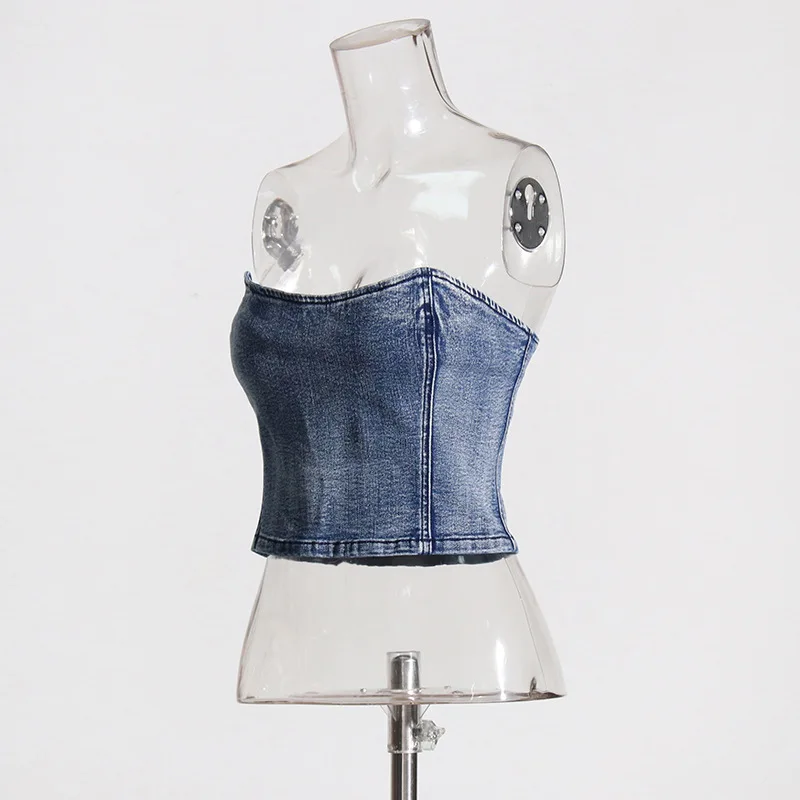 OUDINA Hot Girl Style Short Tops For Women 2024 New High-end Slim Fit Denim Tube Women Top