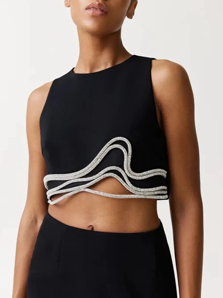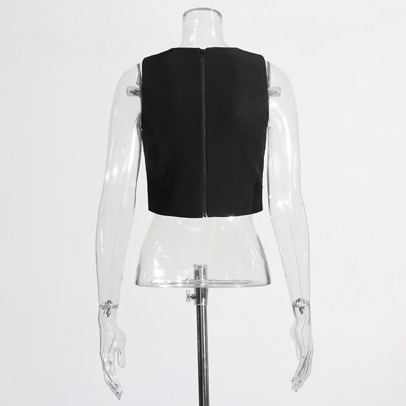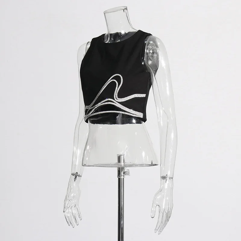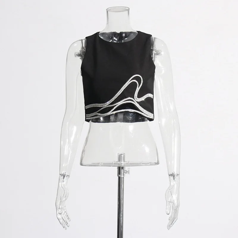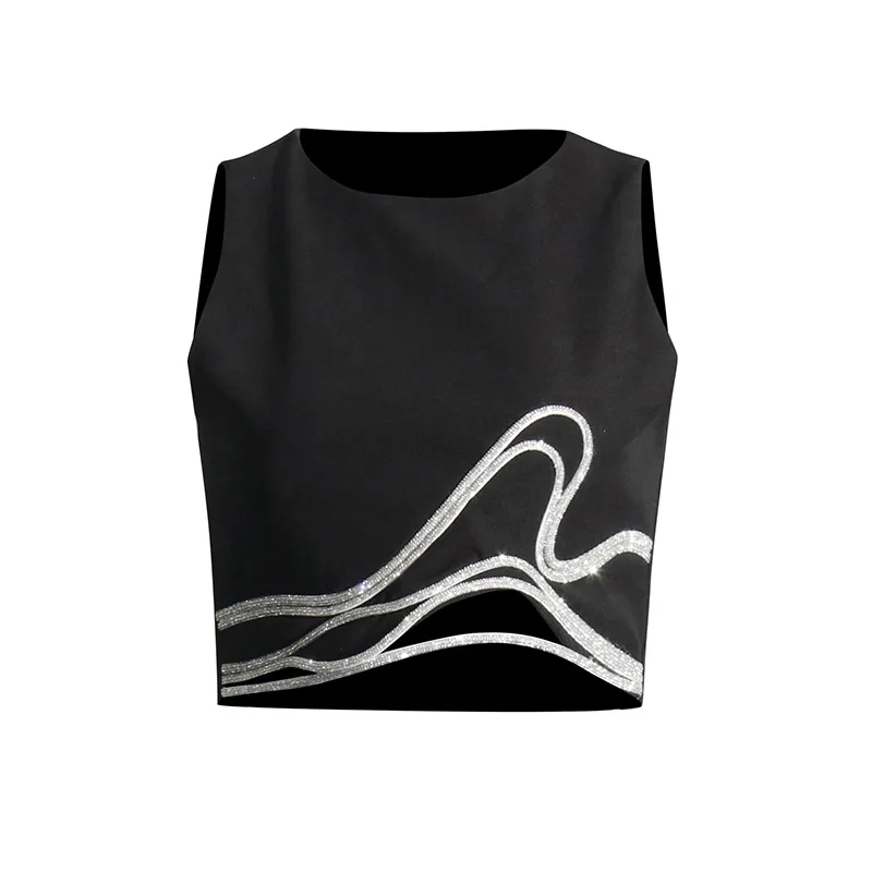 OUDINA New Niche Design Sleeveless Diamond Top 2024 Stitching Irregular Hem Vest Crop Tops For Women