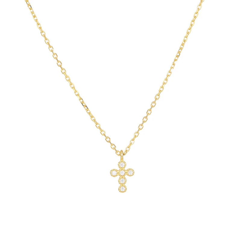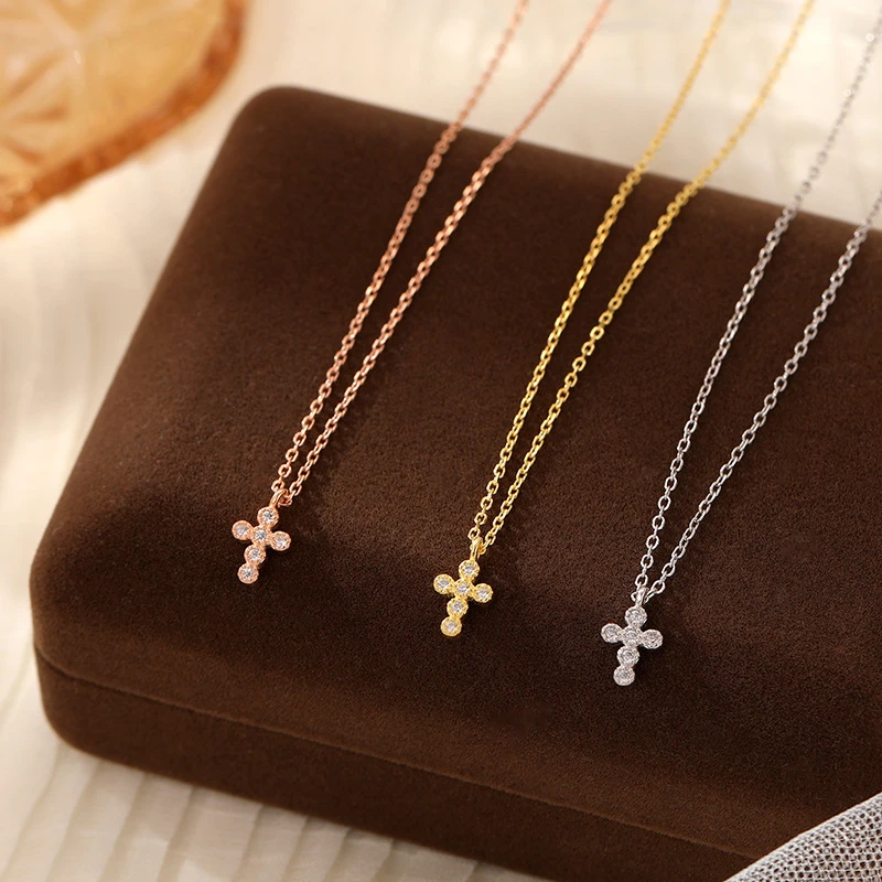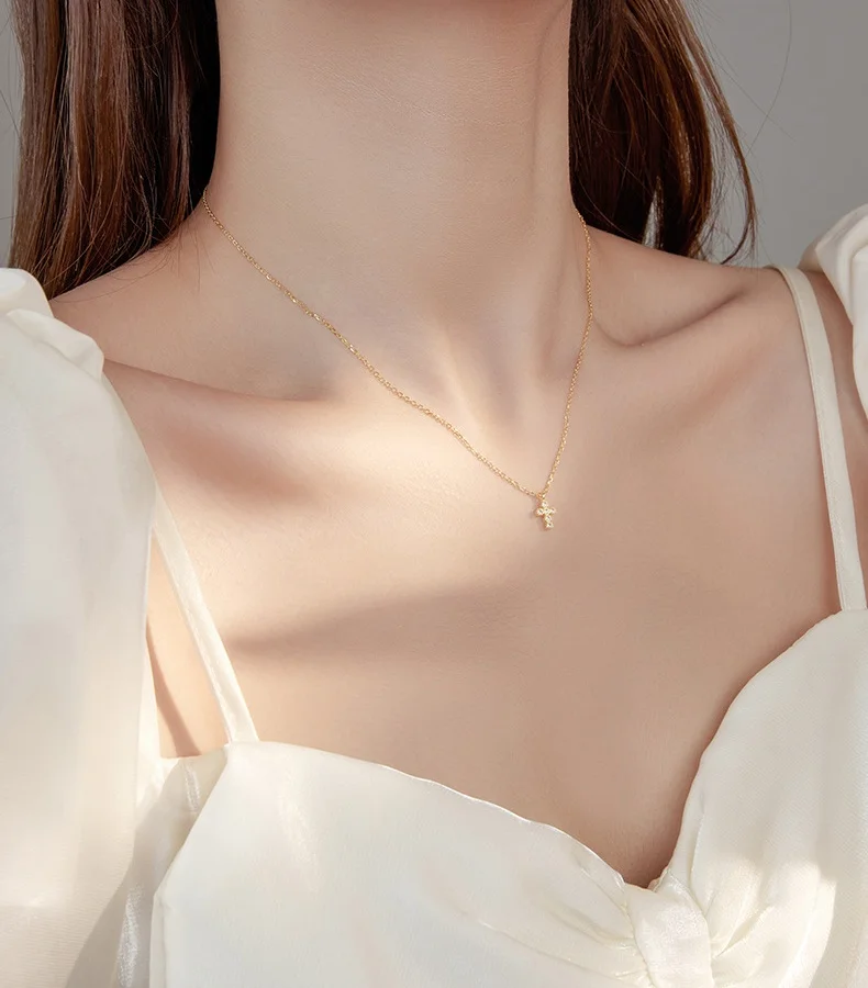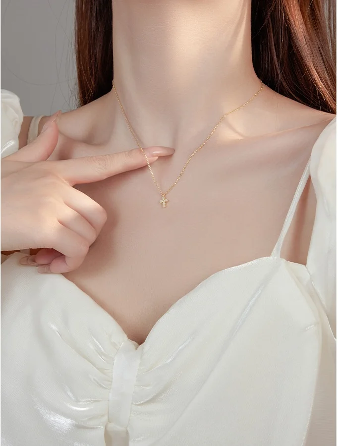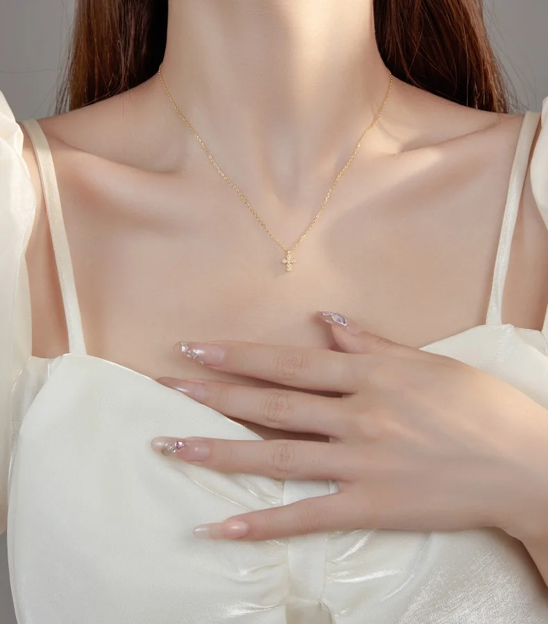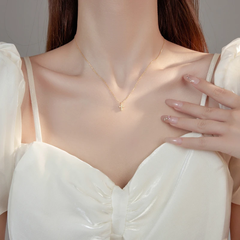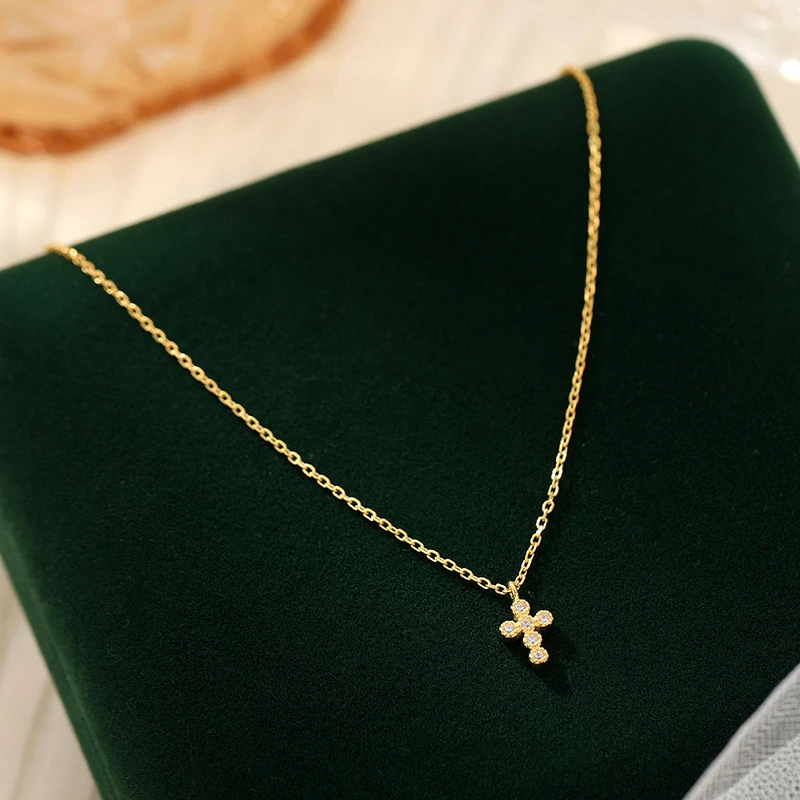Personality Gold Plated S925 Sterling Silver Mini Cross Necklace Women's Collarbone Chain Fine Jewelry Necklace