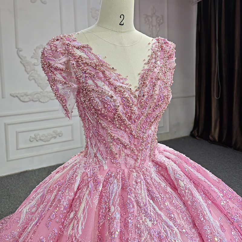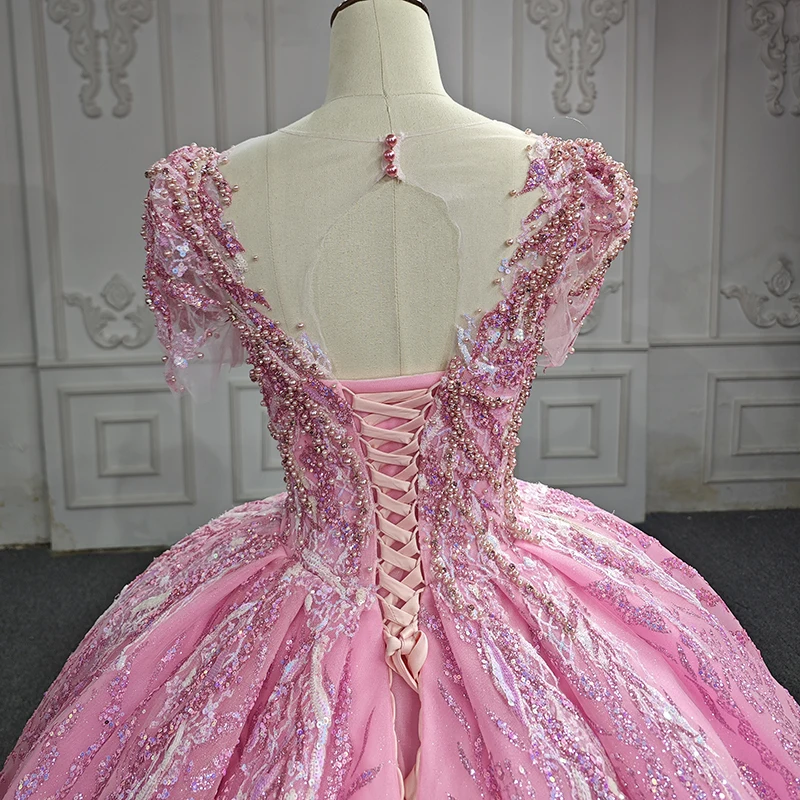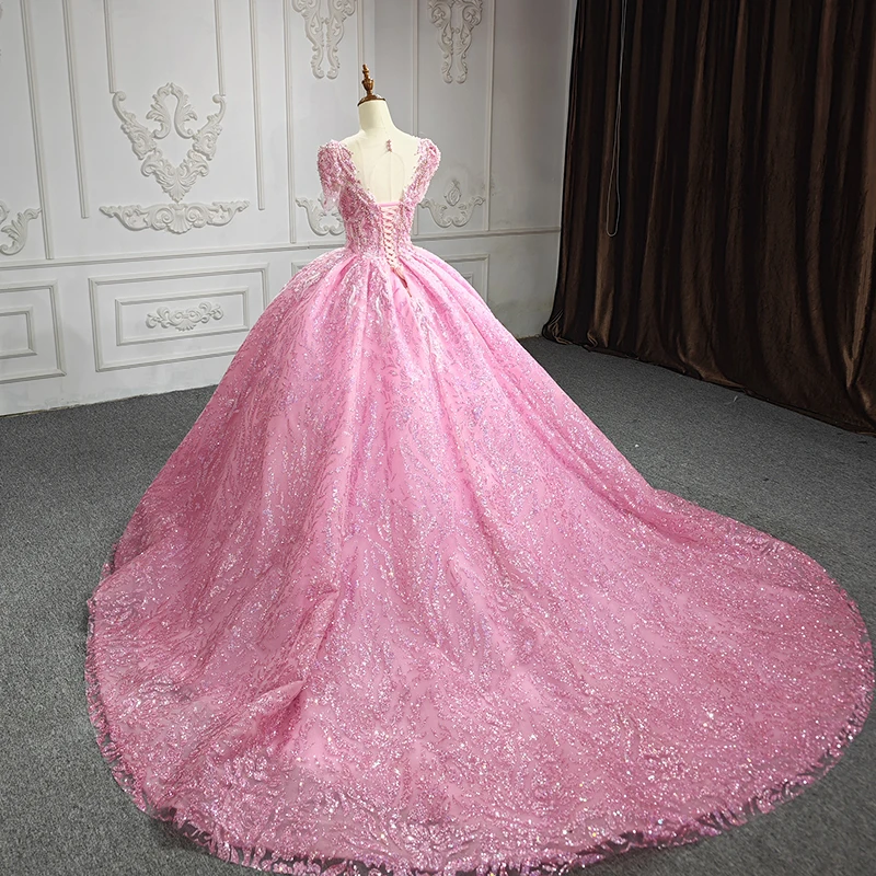 Pink Floral Appliques Lace Quinceanera Dresses Ball Gown Beading Sweet 15 Party 6612