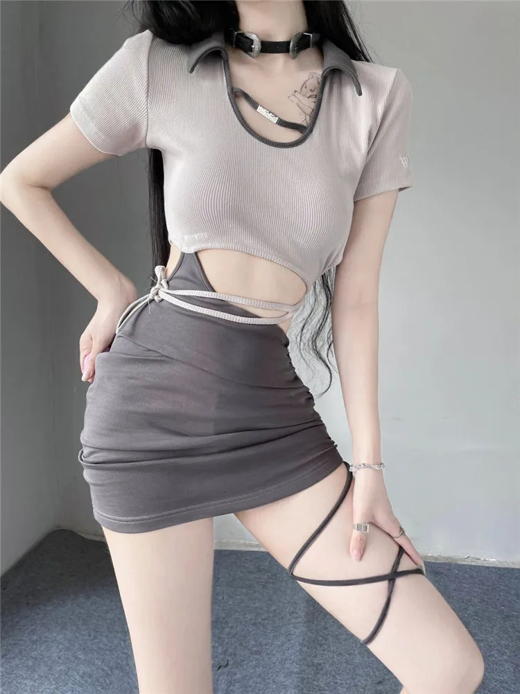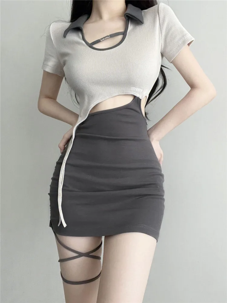 Polo Neck Dress Women Patchwork Sexy Girl Bandage Short Hipster Dress