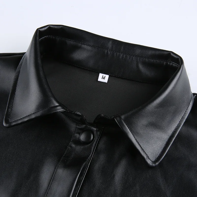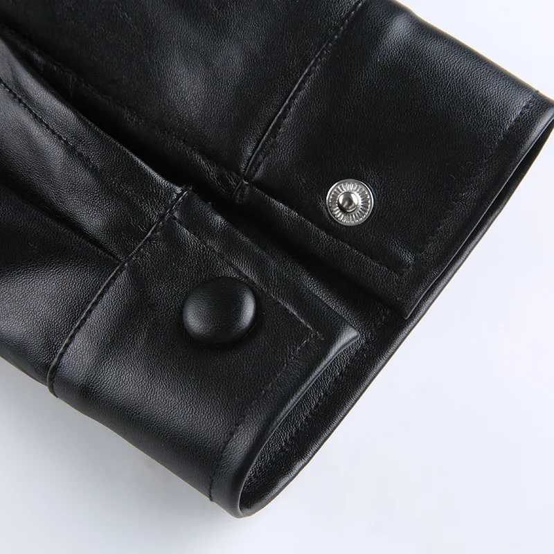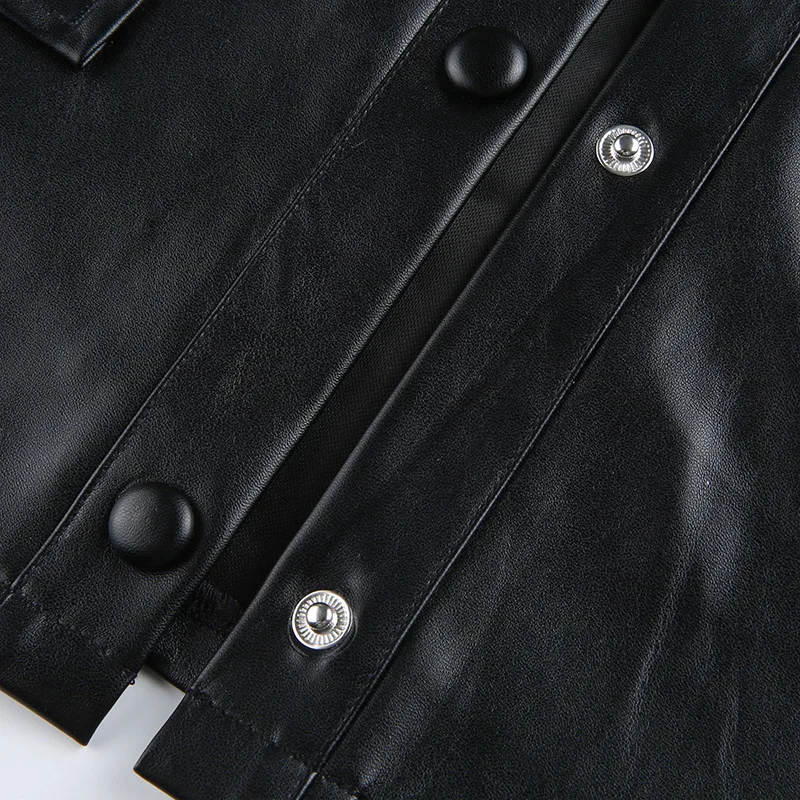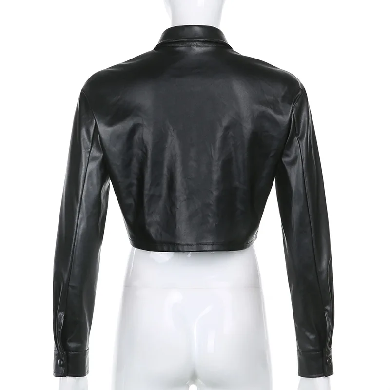 PU Artificial Leather Jacket Motorcycle Short Crop Snap Jacket Outfit Coat Leather Jacket Women 2024