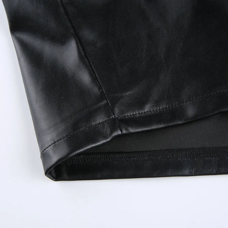 PU Artificial Leather Jacket Motorcycle Short Crop Snap Jacket Outfit Coat Leather Jacket Women 2021