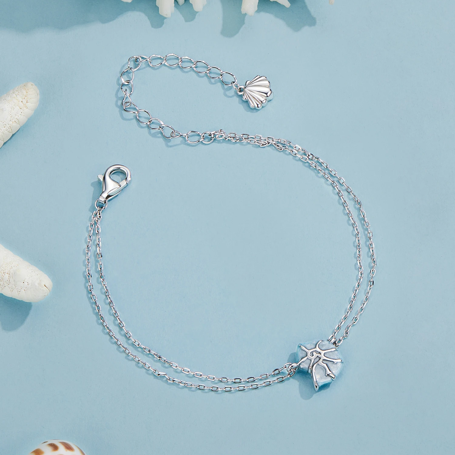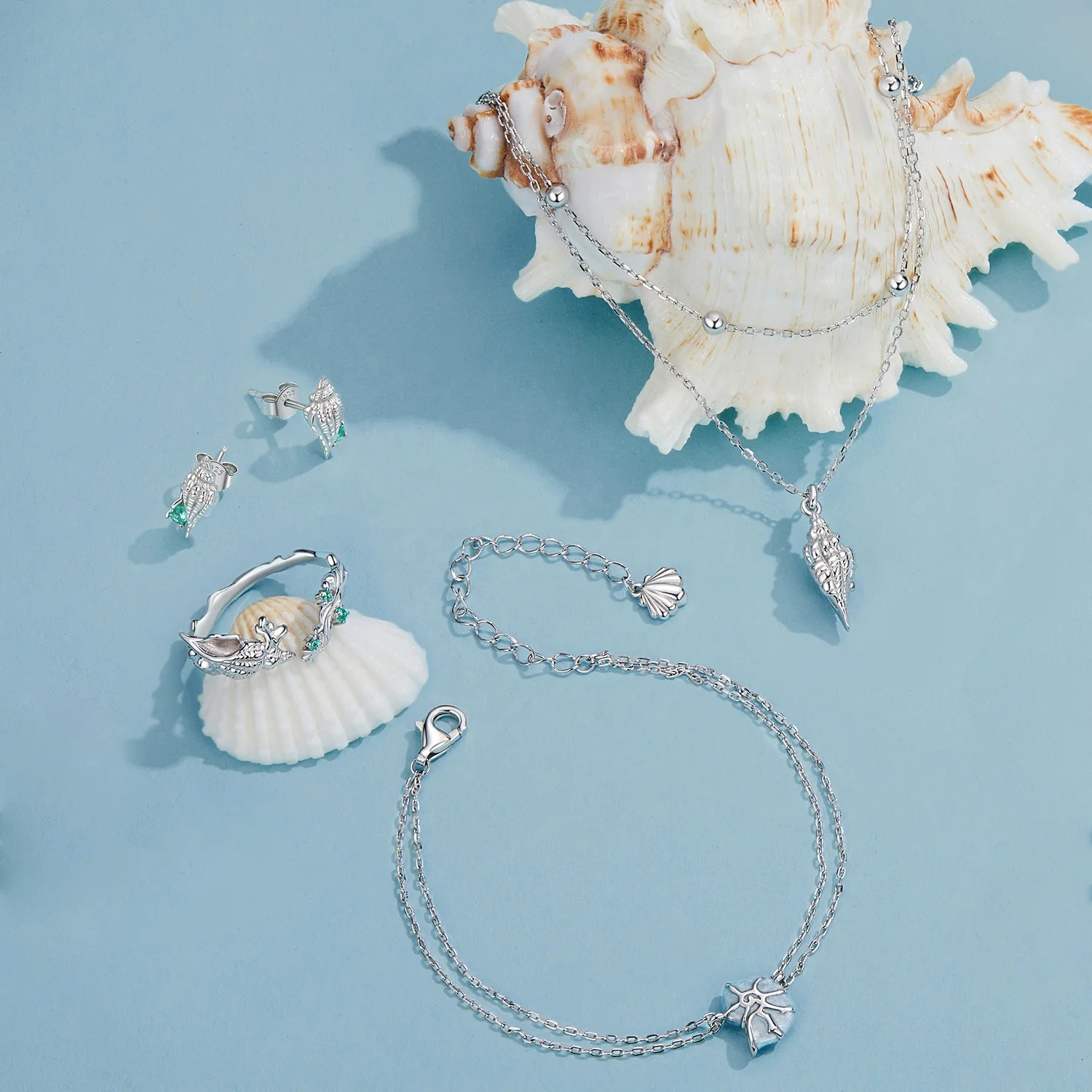 Qings Fashion Sterling Silver Jewelry Sets Fine Jewelry Marine Blue Ocean Conch Shell Turtle Bracelet Necklace Ring Earrings Set