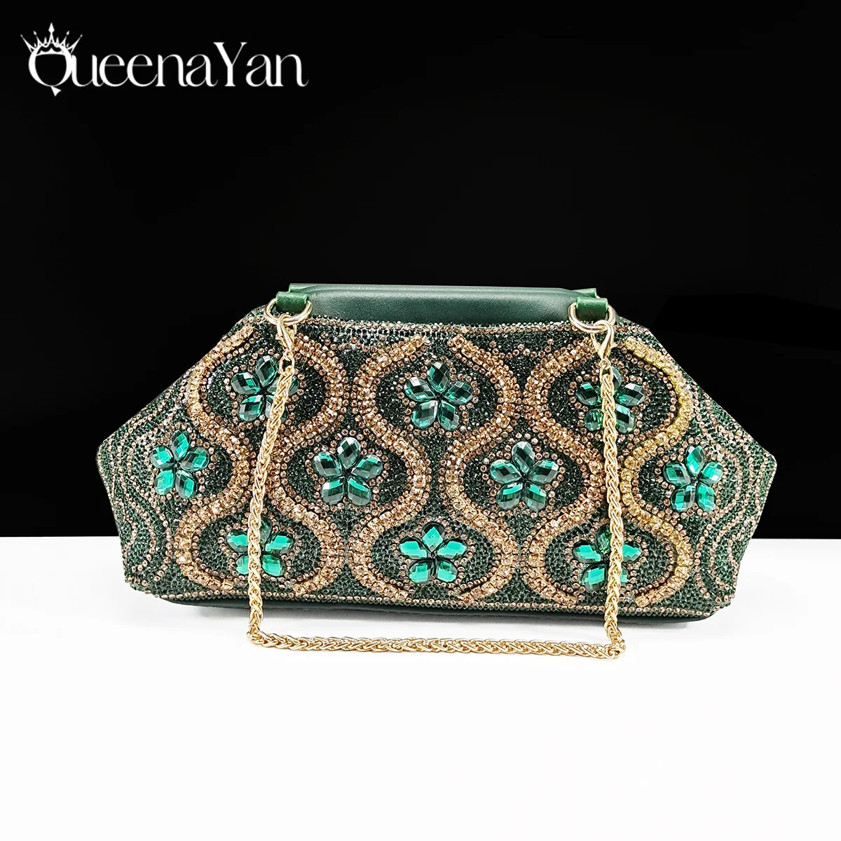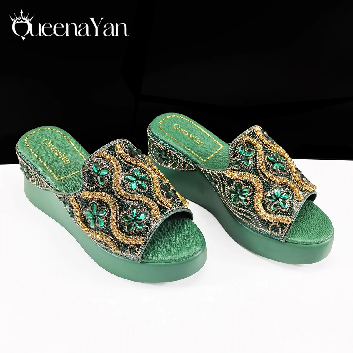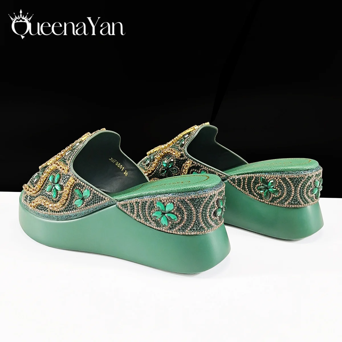Queena Yan High Quality 2025 Newst Hot Selling Open Toe Slingback Sandals with Bag Set in Green Color For Women Wedding Party