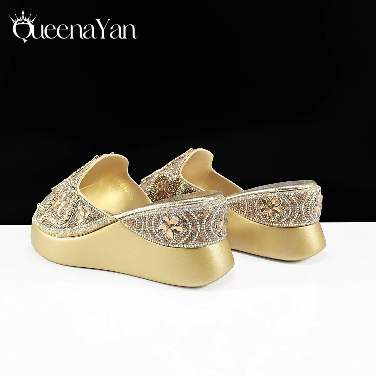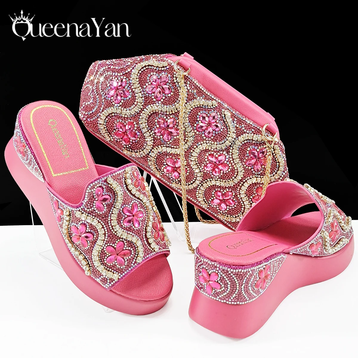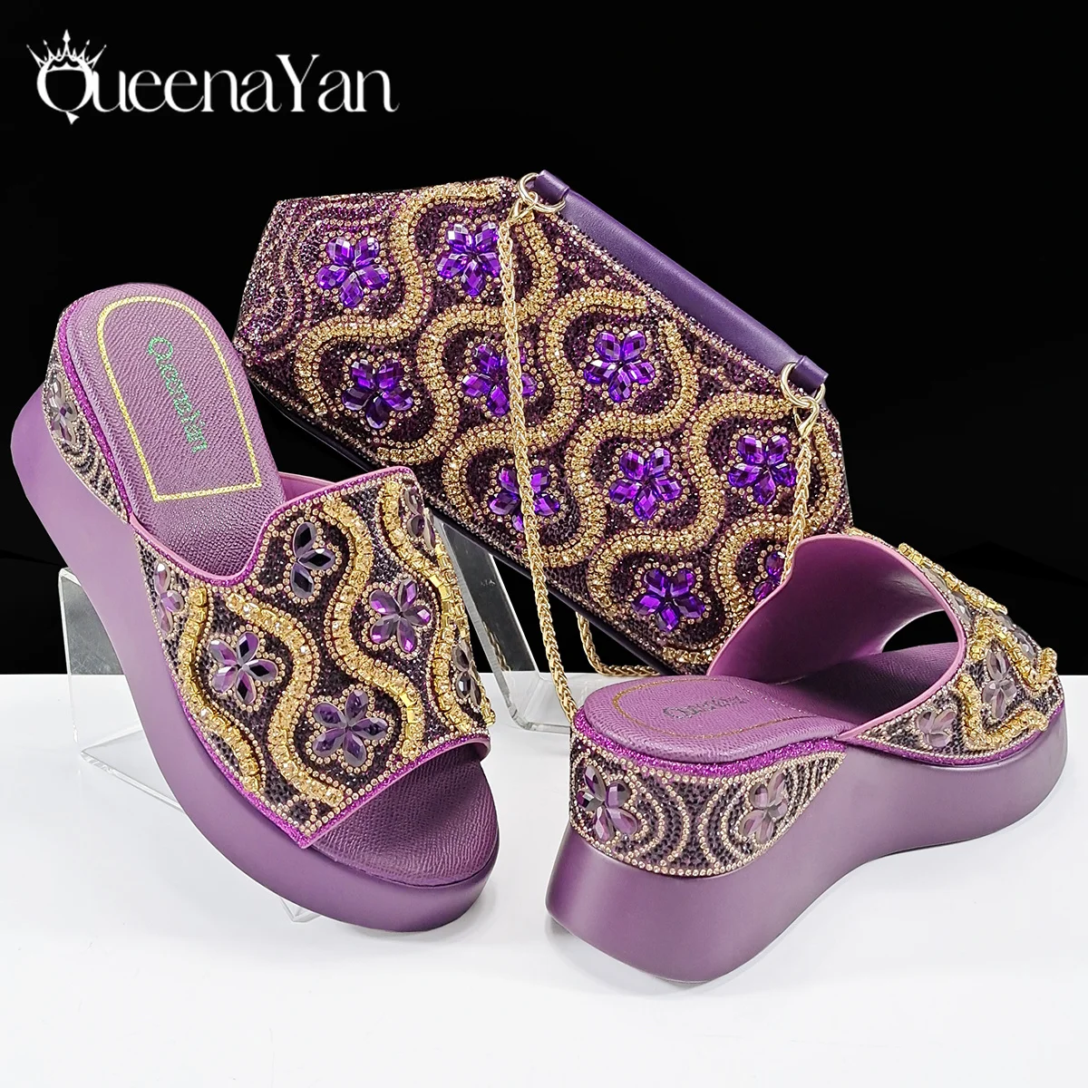Queena Yan High Quality 2025 Newst Hot Selling Open Toe Slingback Sandals with Bag Set in Green Color For Women Wedding Party