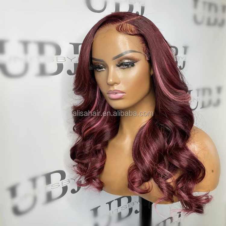 Raw Indian 100% Unprocessed Human Hair Customized New Red Highlight Color Transparent Swiss Lace Frontal Wigs