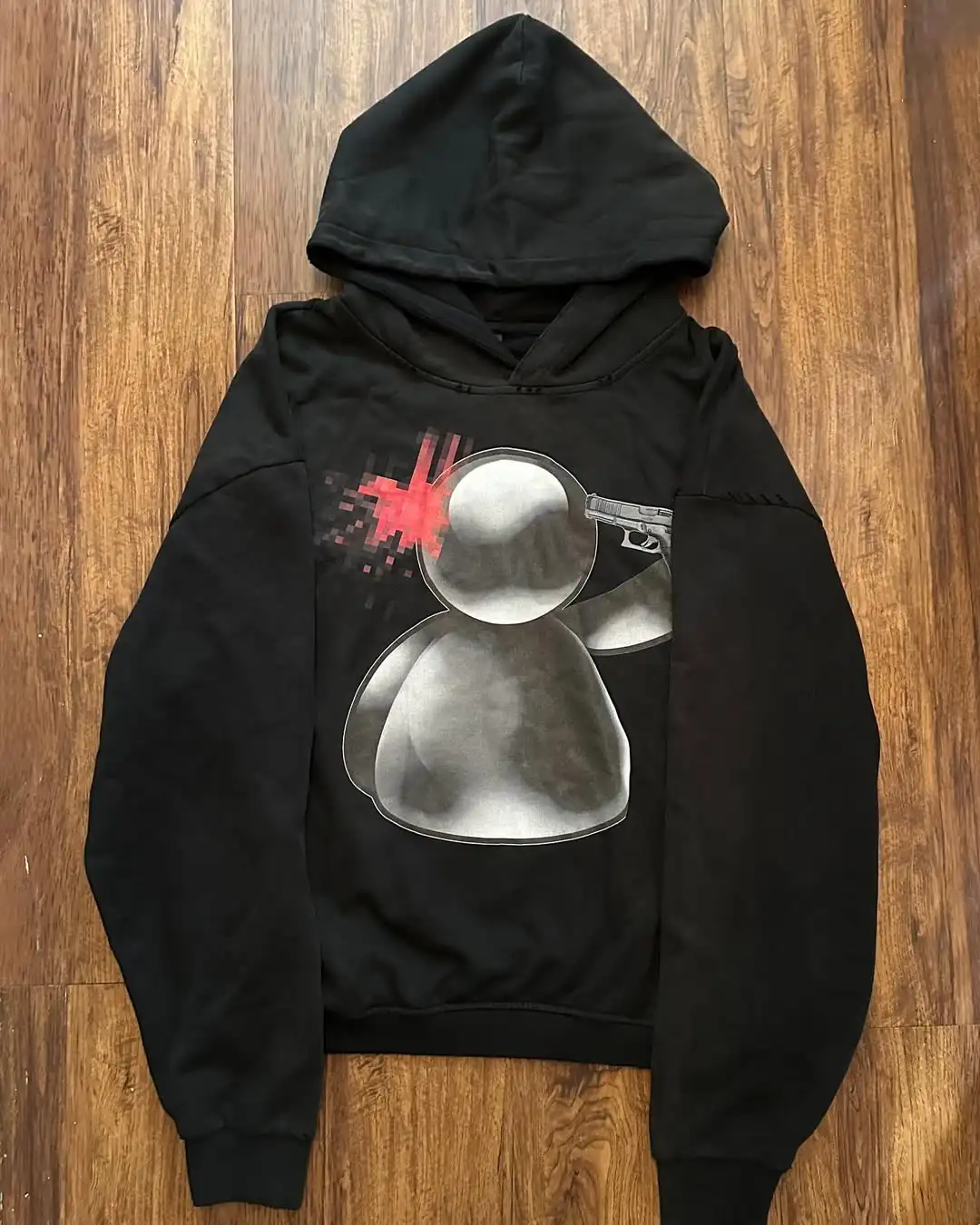 Retro Harajuku Black White Pixel Old Painting Style Faithful Figure Avatar Print Gothic Pattern Y2K Hoodie Men Loose Sports Top