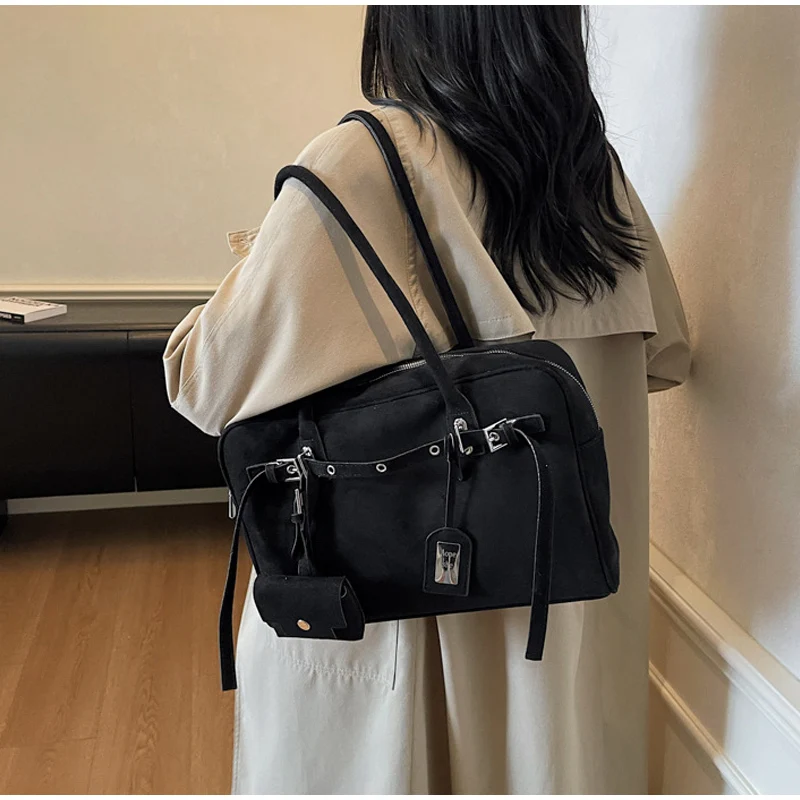 Retro Suede Square Handbag Fashion Versatile High-quality Texture Underarm Bag Exquisite Hardware Design Work Commute Tote Bag