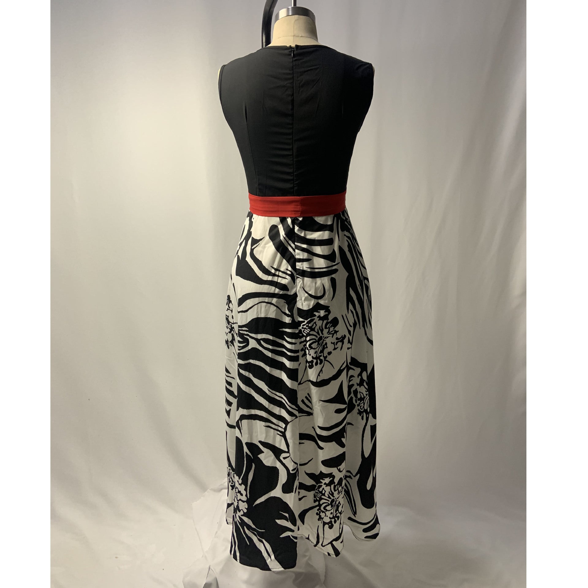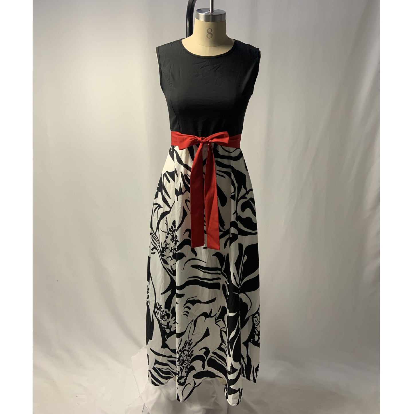 S to 5XL New Spring/Summer Sleeveless Printed High Waist Belt Maxi Elegant Dress For Fat Women