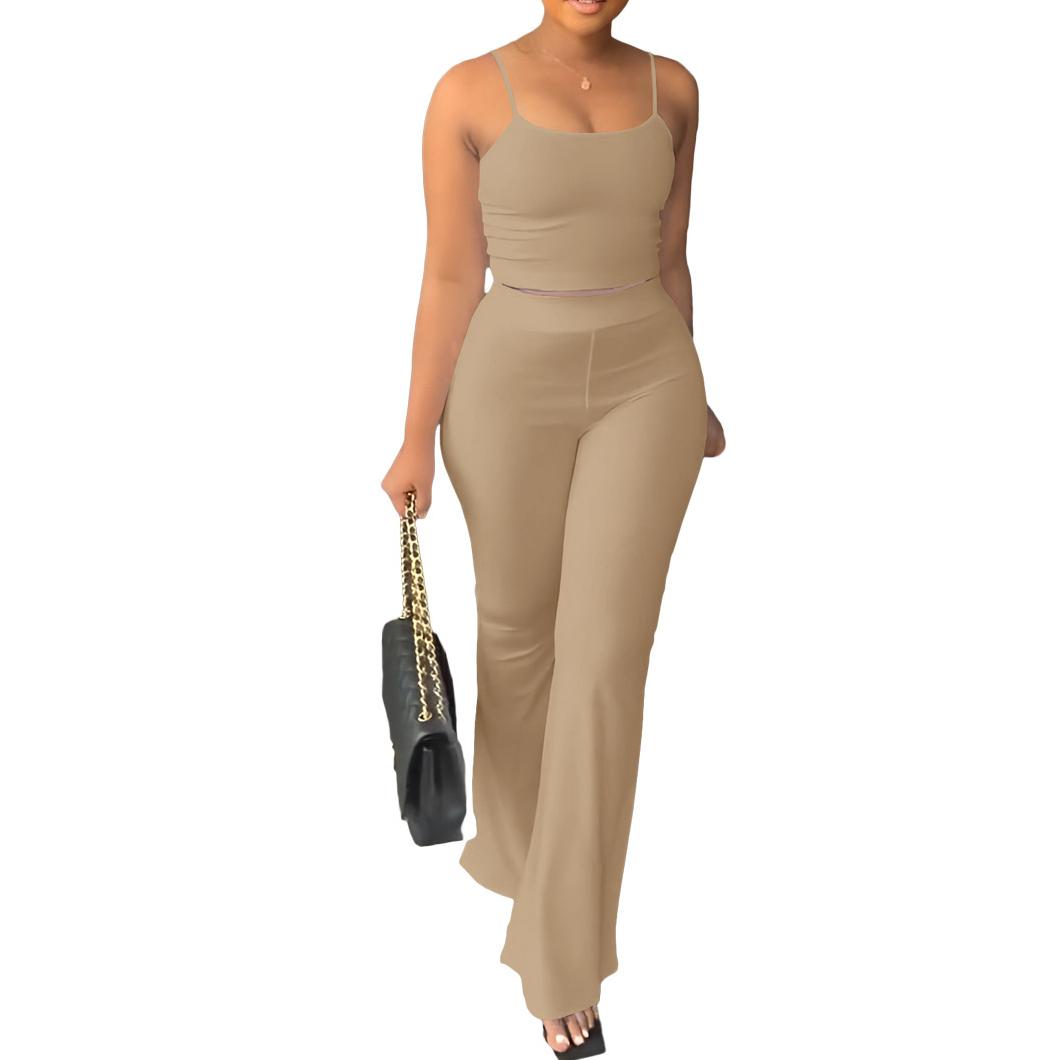 S-XXL African Women 2 Piece Set Tank Crop Tops And Pants Suits Summer New Solid Elegant Sexy Office Lady African Outfits