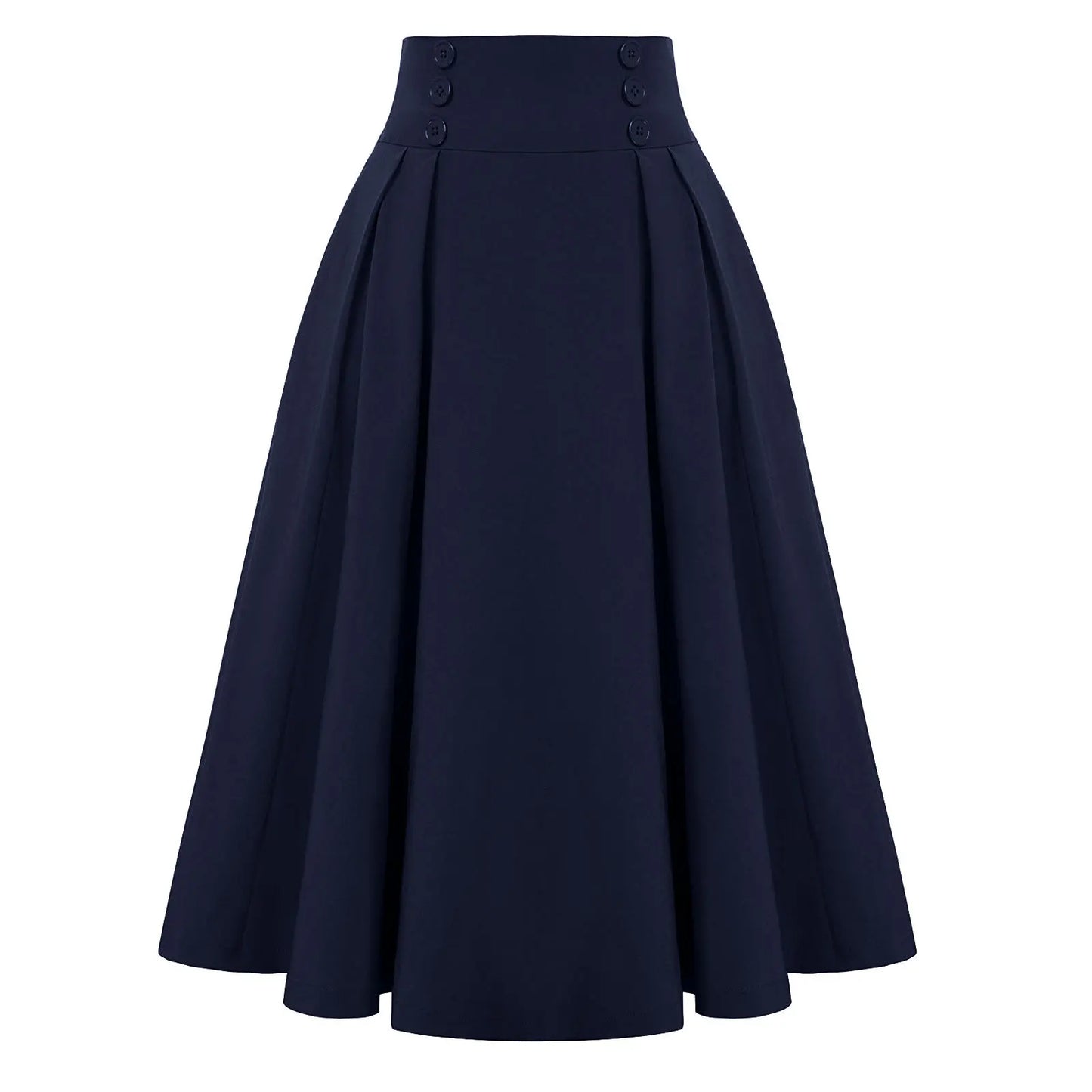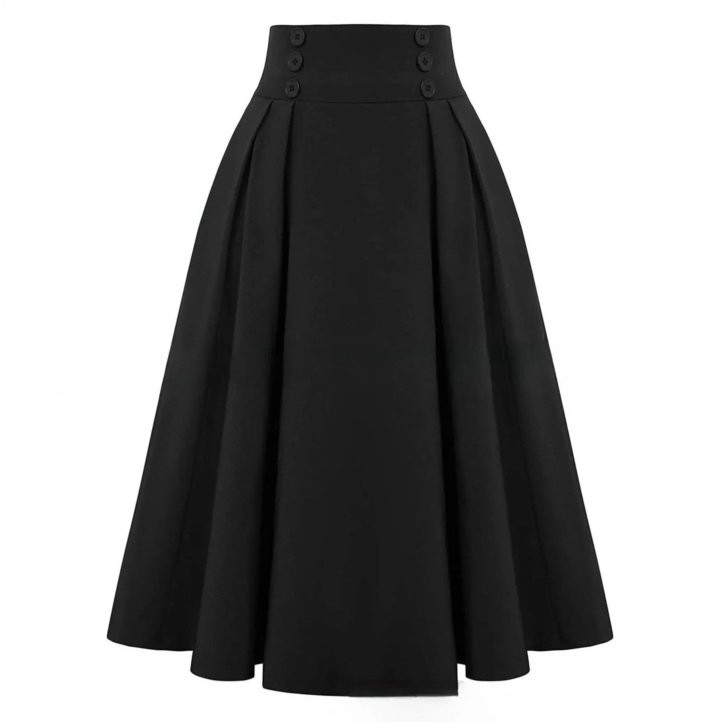 S-XXL European and American Fashion Casual Half Skirt Pleated Mid length Solid Color Half Skirt