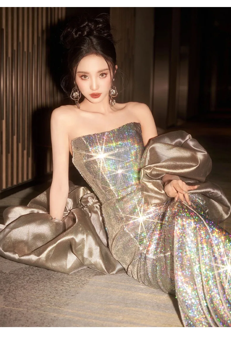 S0655T 2024 Classic Fairy-Style Shoulder Banquet Dress Mermaid Silhouette Lace Pattern Chapel Train Hot-Selling New Design