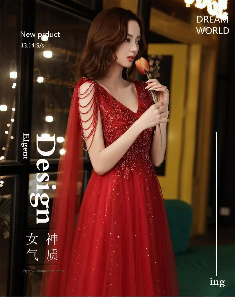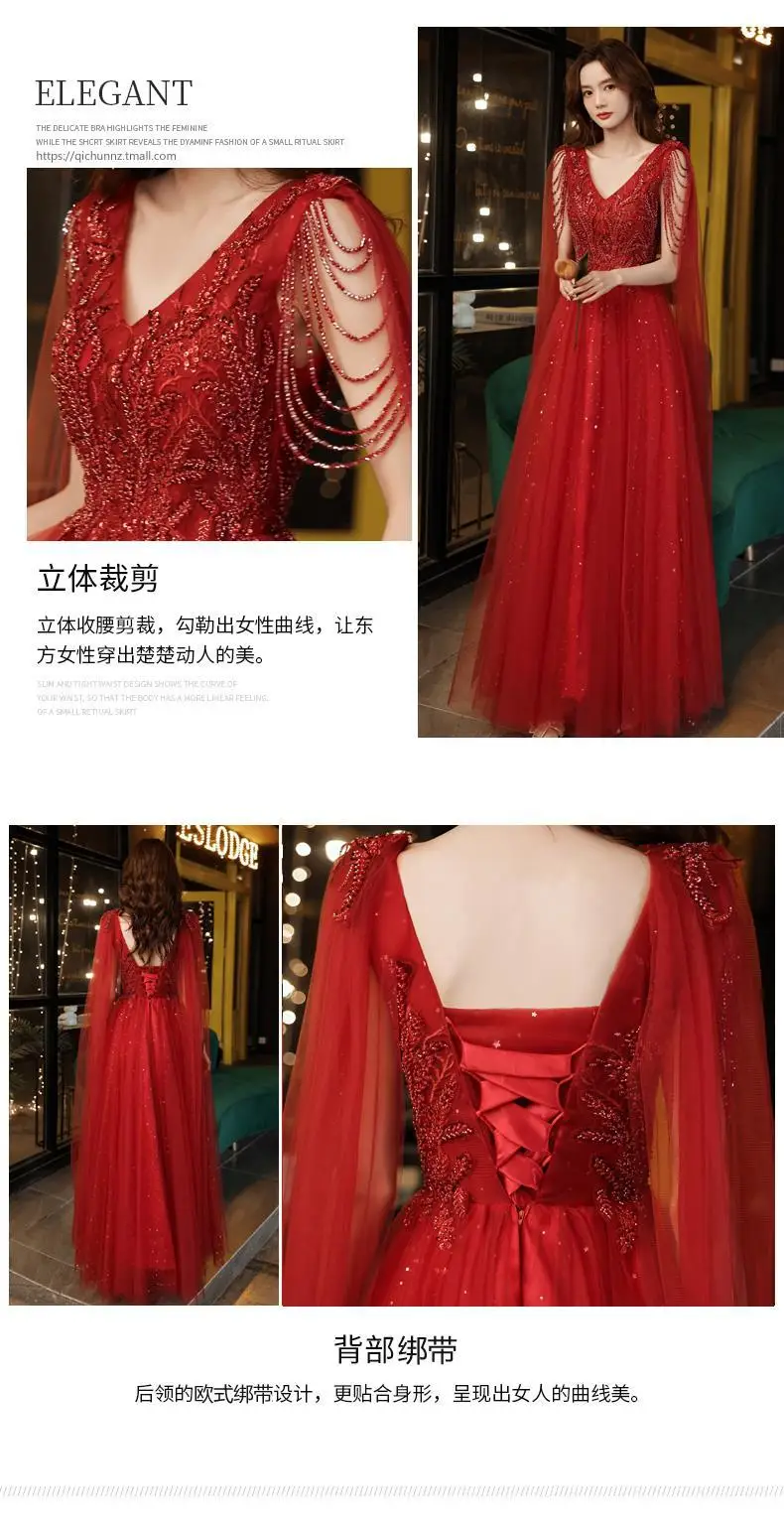 S1541T 2024 Ladies' Elegant Evening Gown Long-Sleeved Light Luxury Panton Dress Lace Decoration A-Line Chapel Hot Selling