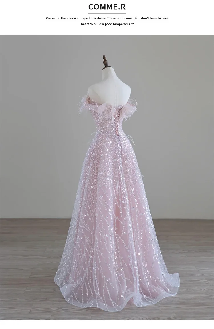 S1558T 2024 High Quality Women's Elegant Evening Dress V-Neck Ball Gown Royal Design Lace Decoration Long Thin Classic Chapel