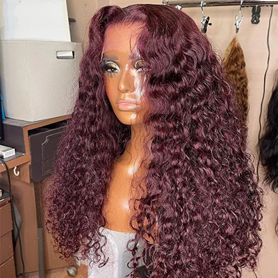 Short Burgundy Curly Wigs Transparent 4x4 Lace Closure Brazilian Virgin Hair short Bob curly wigs for black women