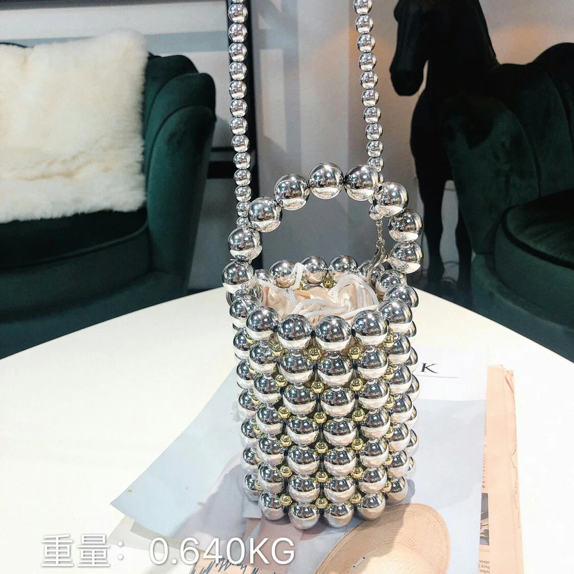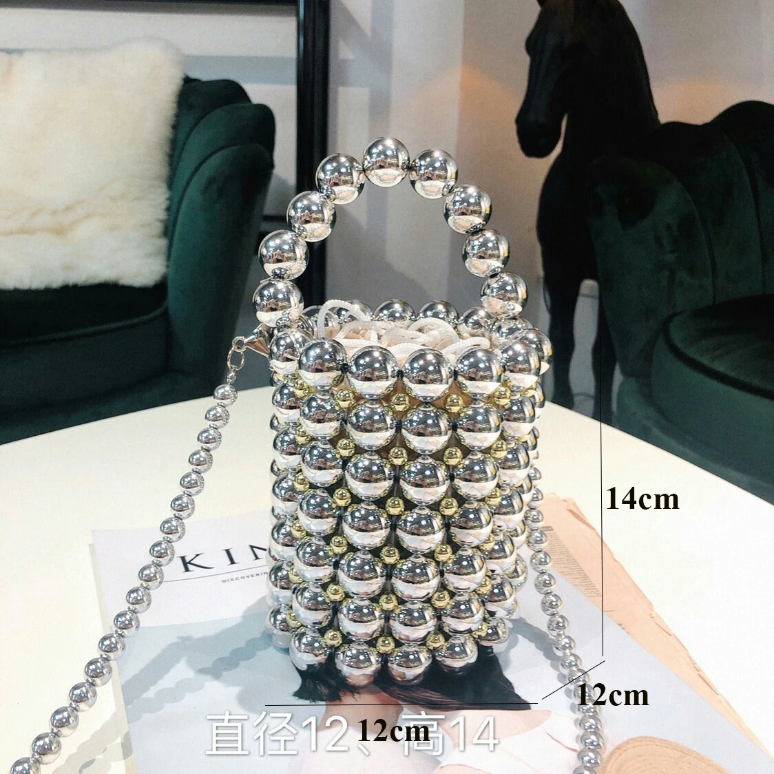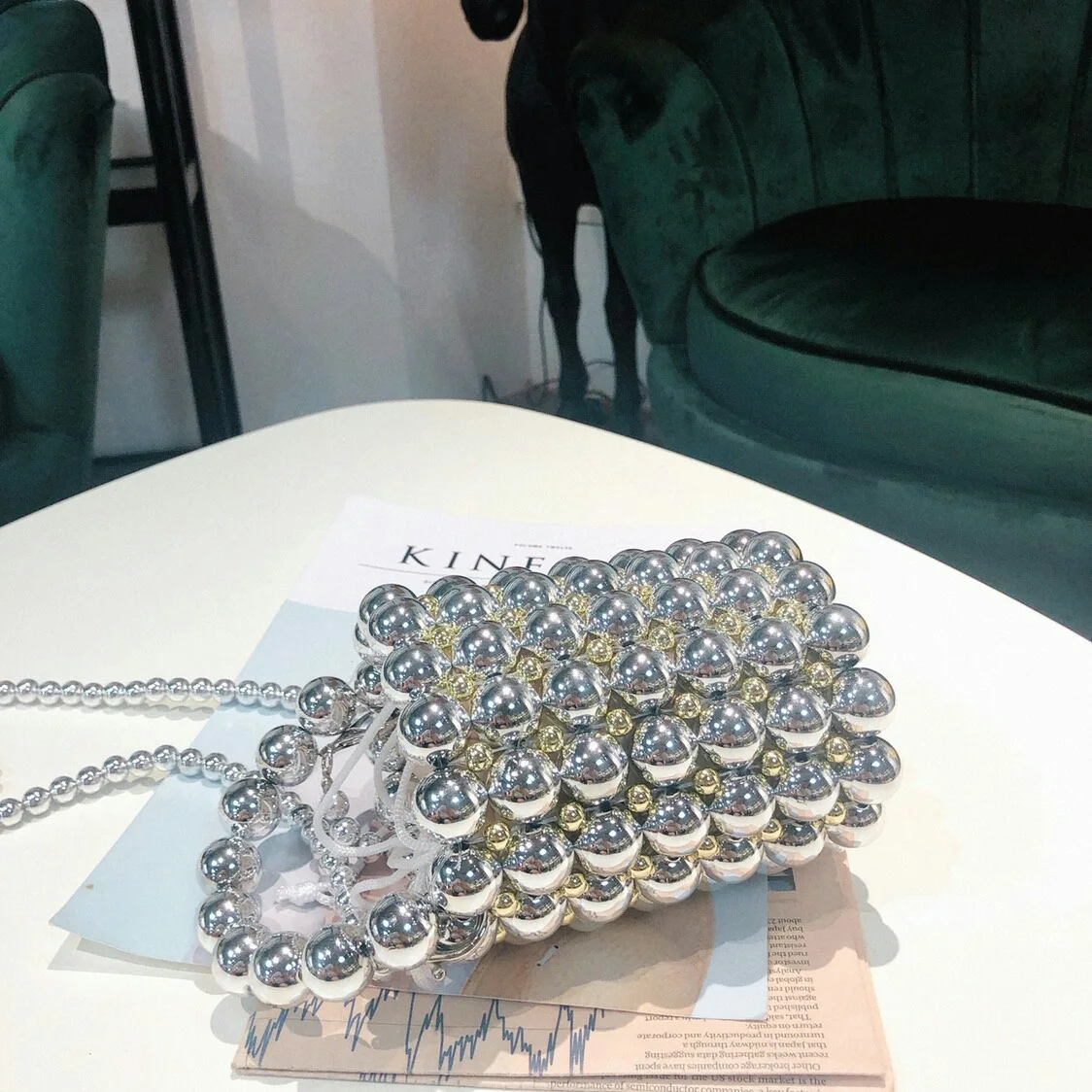Silver Peals Beaded Handbags Handmade Lady Purse Beading Women Portable Mini Tote Beach Bag Luxury Brand Shoulder Crossbody bags