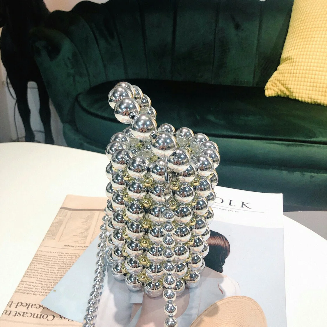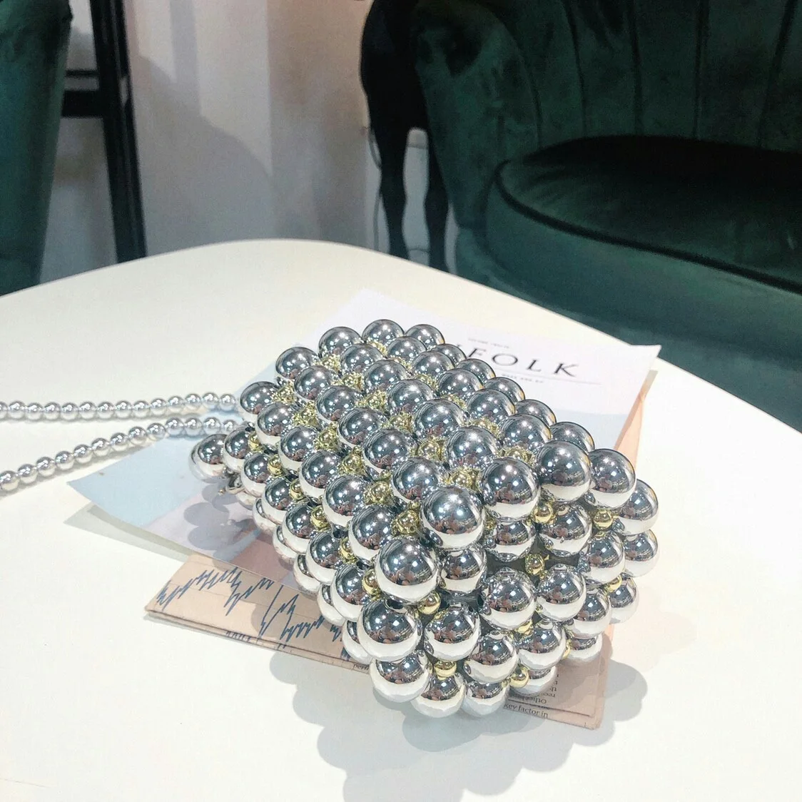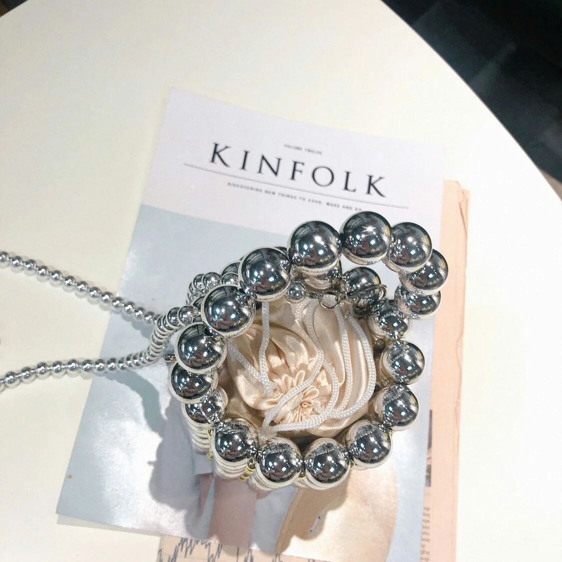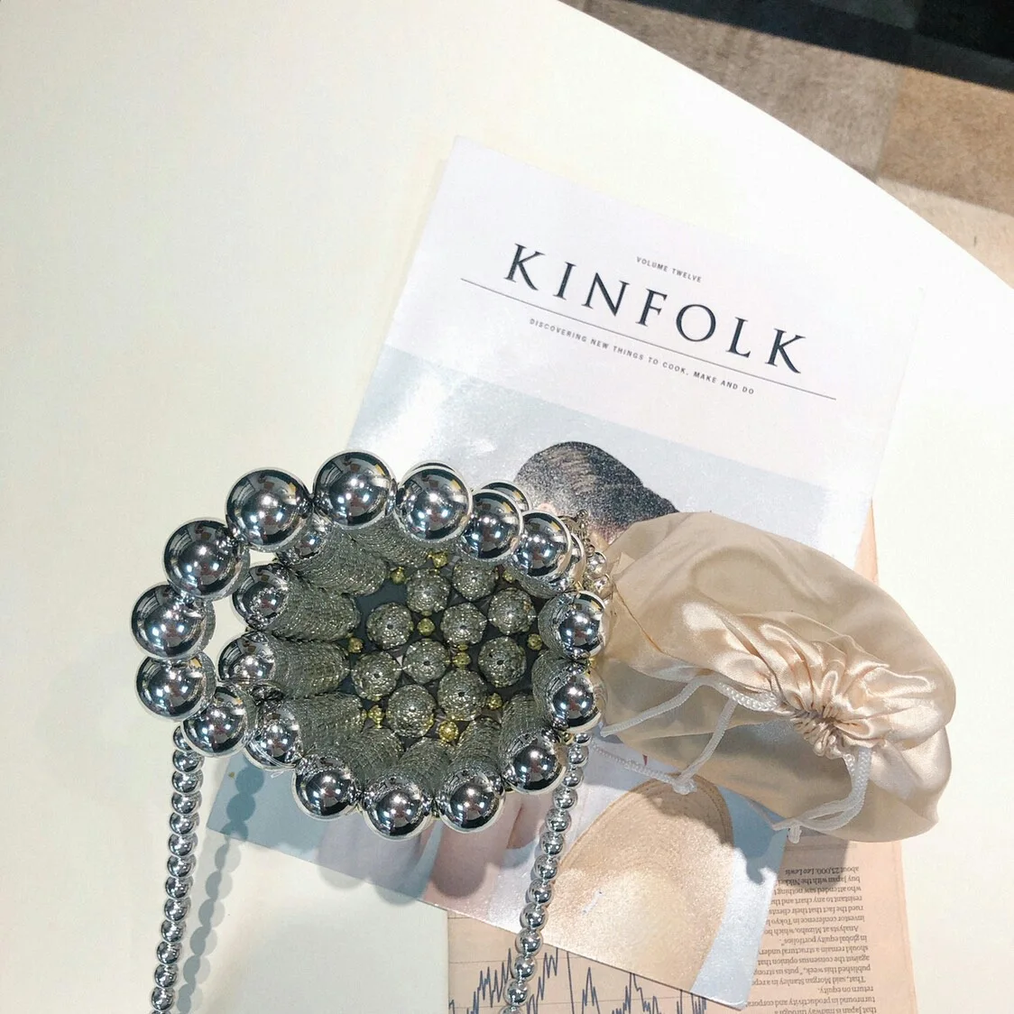 Silver Peals Beaded Handbags Handmade Lady Purse Beading Women Portable Mini Tote Beach Bag Luxury Brand Shoulder Crossbody bags