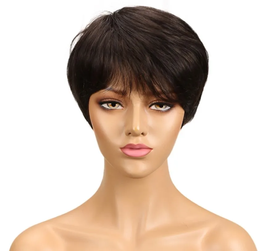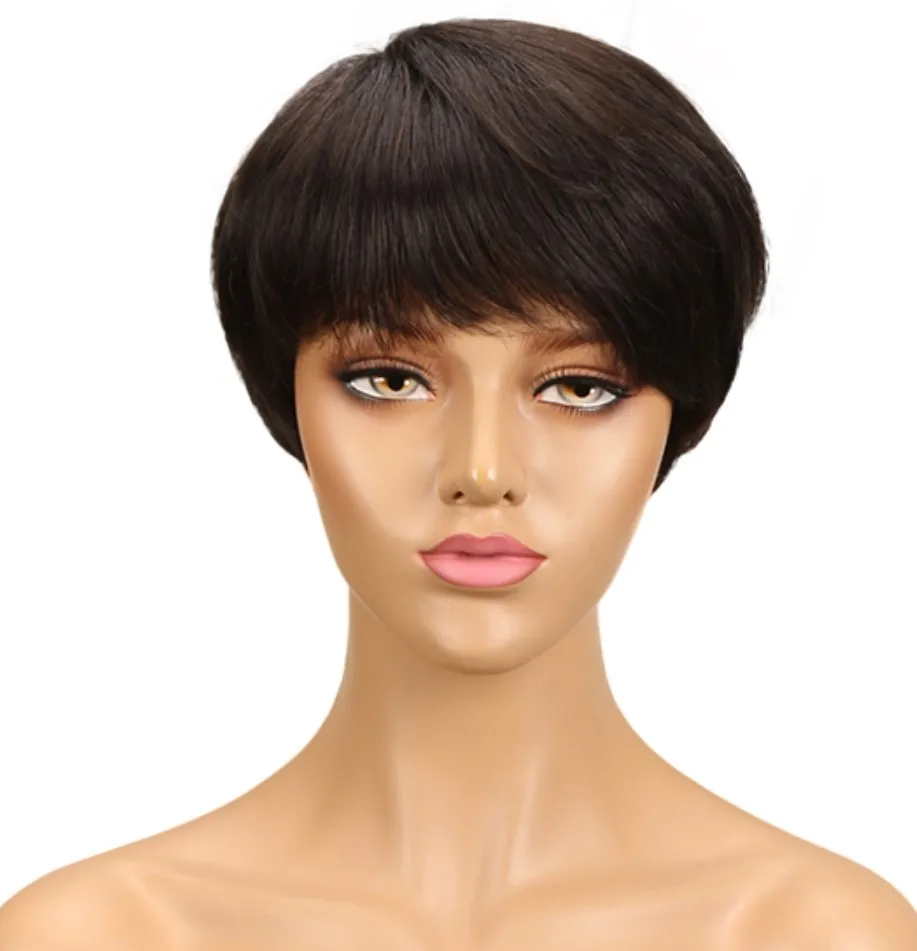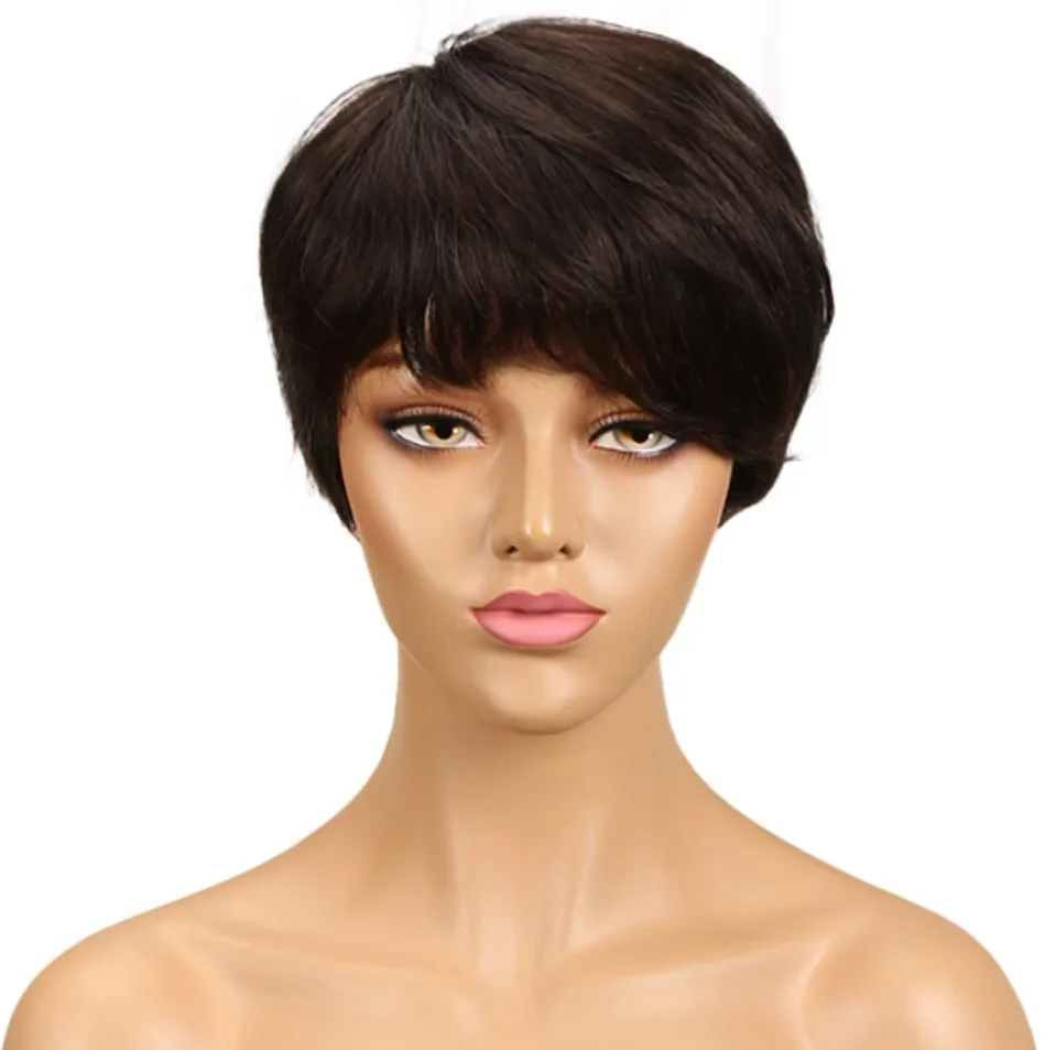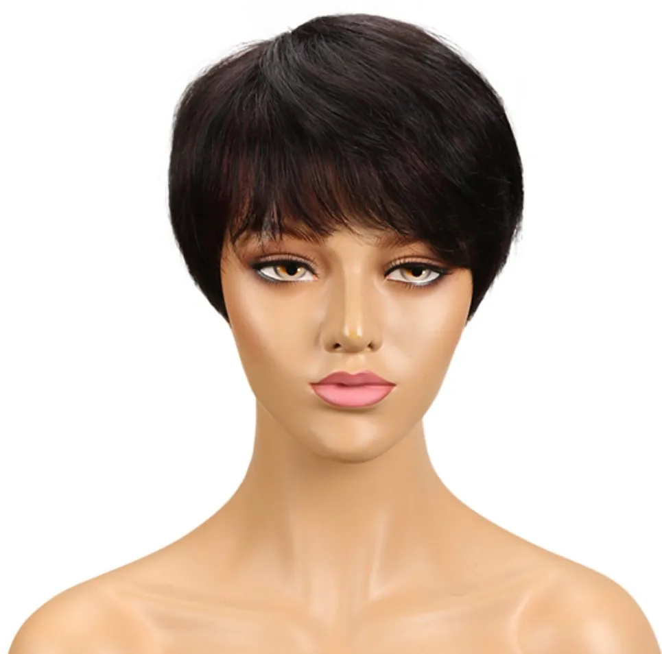 sleek quality Wholesale Cheap dark color pixie cut Brazilian hair Machine Made Wig Short Bob Straight wig Human Hair Wigs