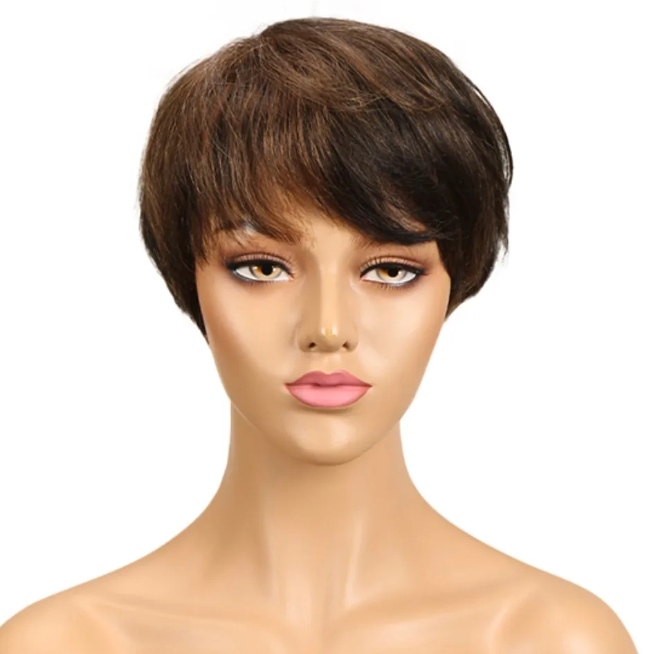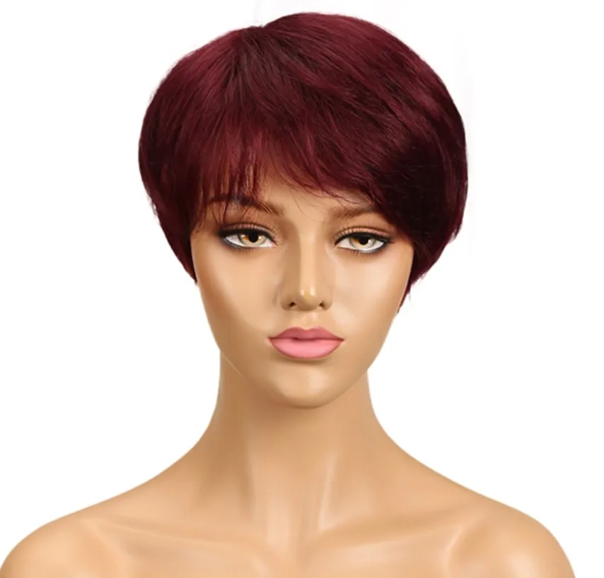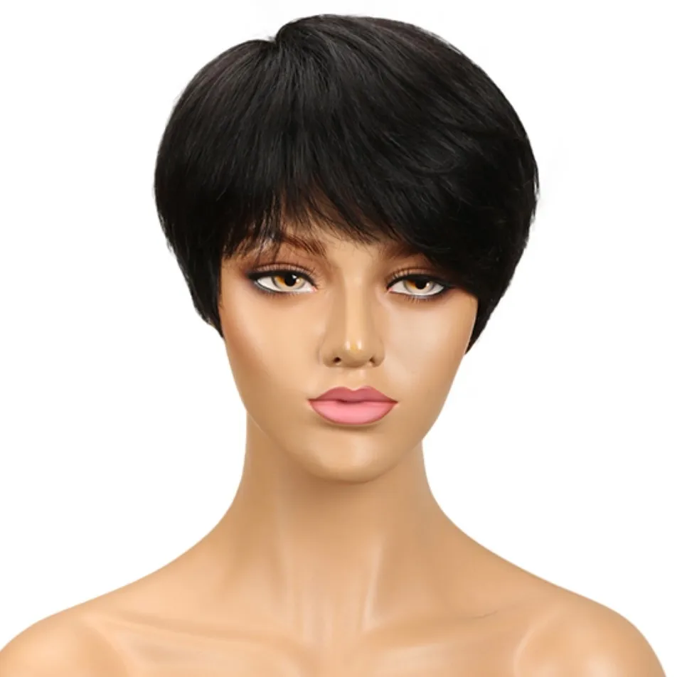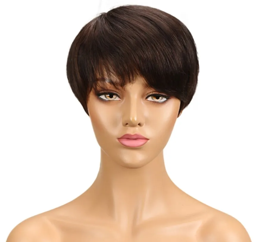 sleek quality Wholesale Cheap dark color pixie cut Brazilian hair Machine Made Wig Short Bob Straight wig Human Hair Wigs