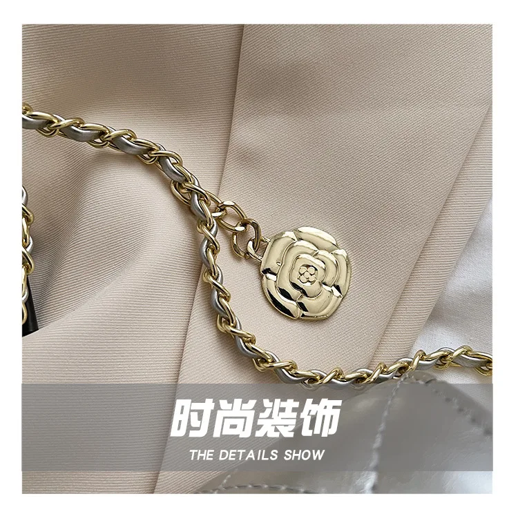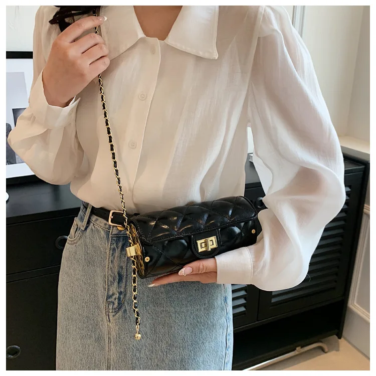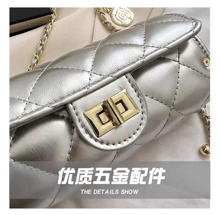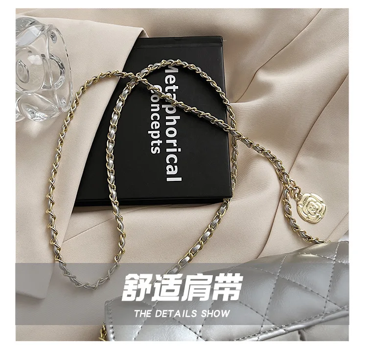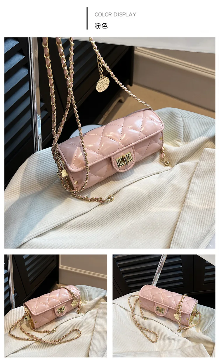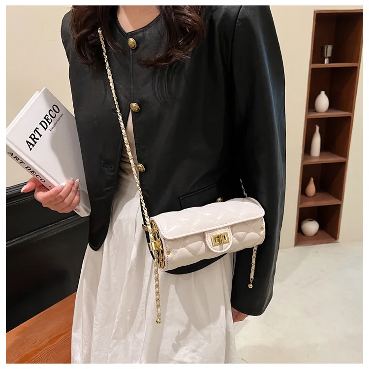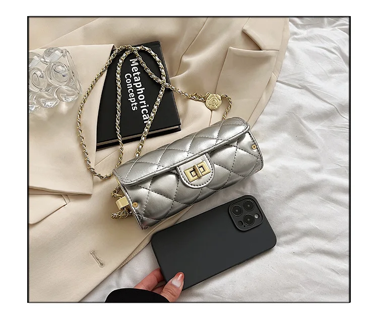 Small Barrel Shaped Shoulder Bag For Women 2023 Diamond Lattice Round Handbag Purse Casual Crossbody Bag Camellia Pu Leather Bag