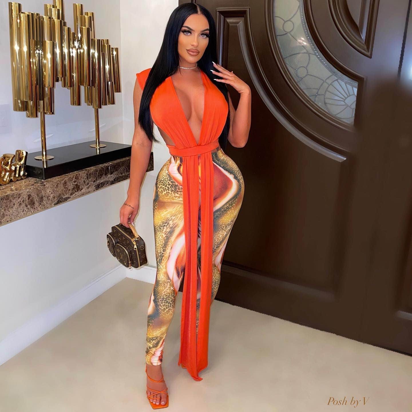 Summer 2022 Women Clothing Halter Crop Top Silk Two Piece Pants Set Sleeveless Tube Top Geometry Printed Legging Set Club Wear